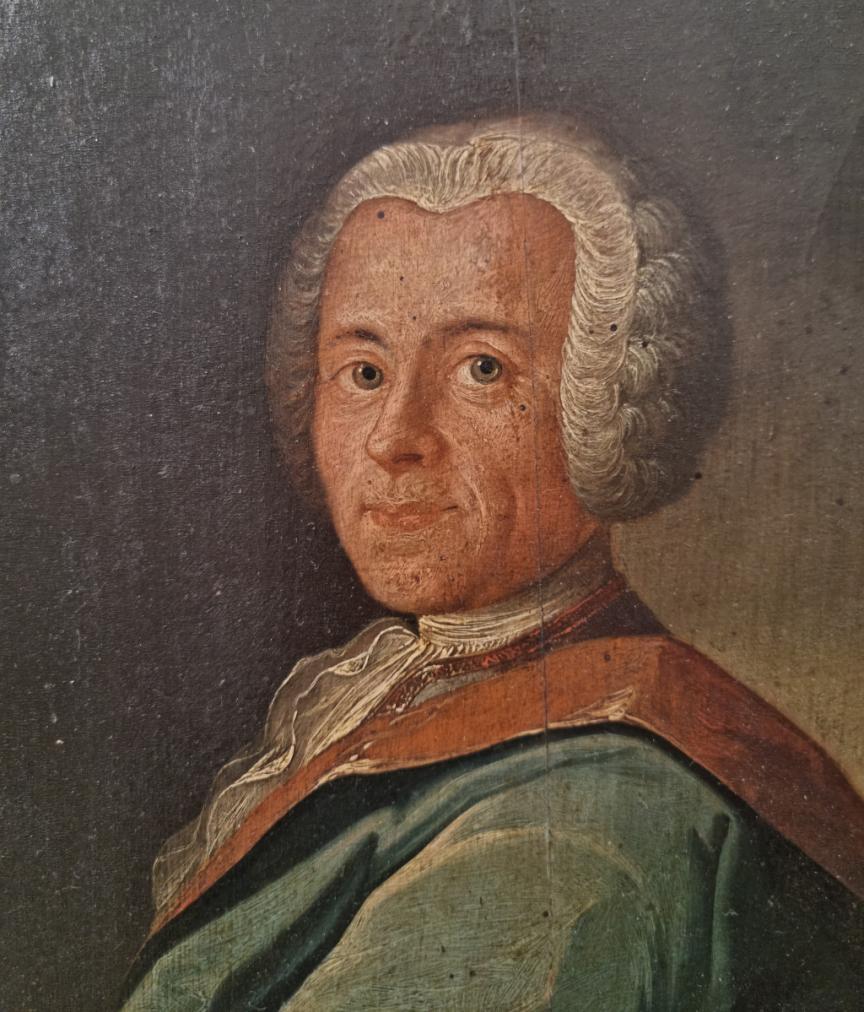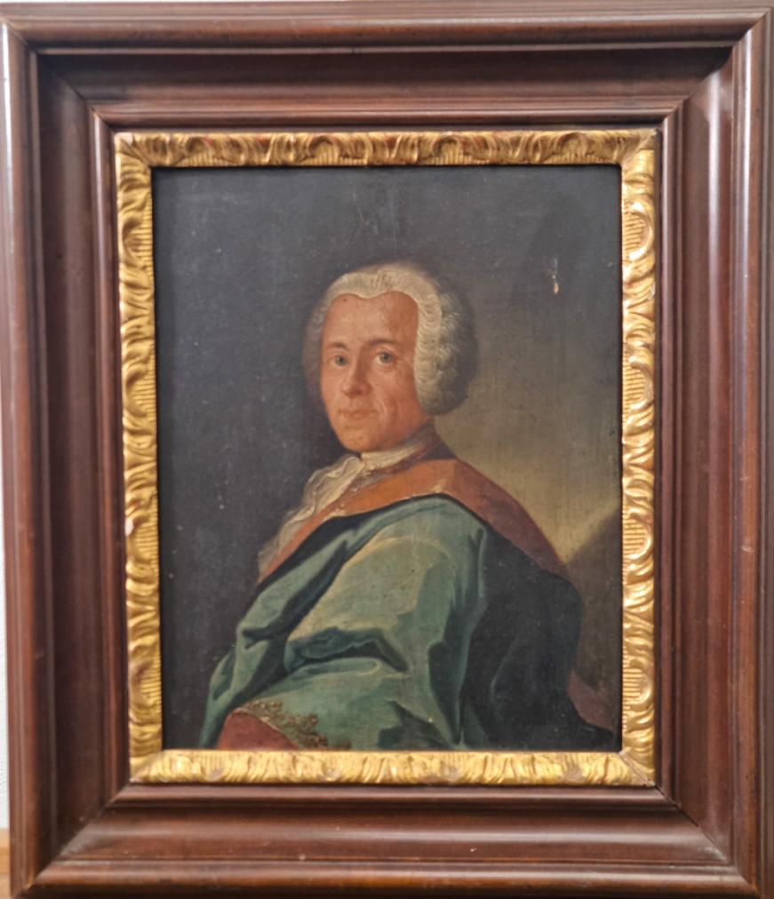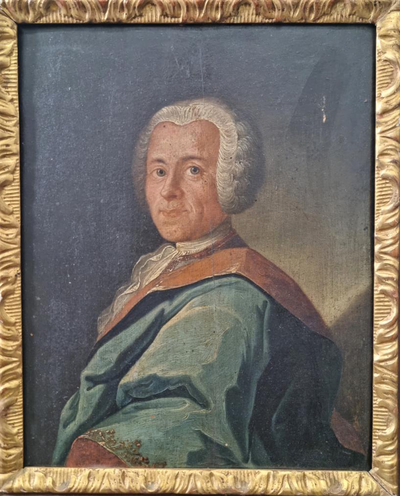 Klasické dílo s námětem portrétu muže šlechtického původu. Autor používá šerosvit, díky kterému upíná pozornost na portrétovaného muže. Oděv je bohatě zdobený, v místech vlasů vidíme jednotlivé tahy štětce. Olej na dřevěné desce, vyztuženo parketáží rozměry s rámem 36 x 31,5 cm, rozměry malby 23,5 x 18 cm. Nesignováno.