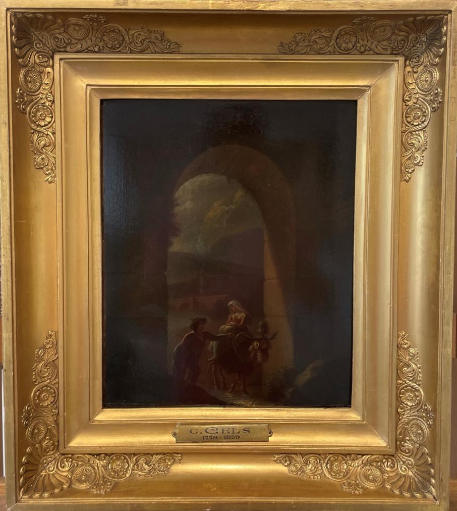 Rozměr díla 27 x 33 cm, včetně rámu 44 x 50 cm, olej na dřevě, signováno v dolní části uprostřed - štítek se jménem "C. Cels 1778 - 1859".