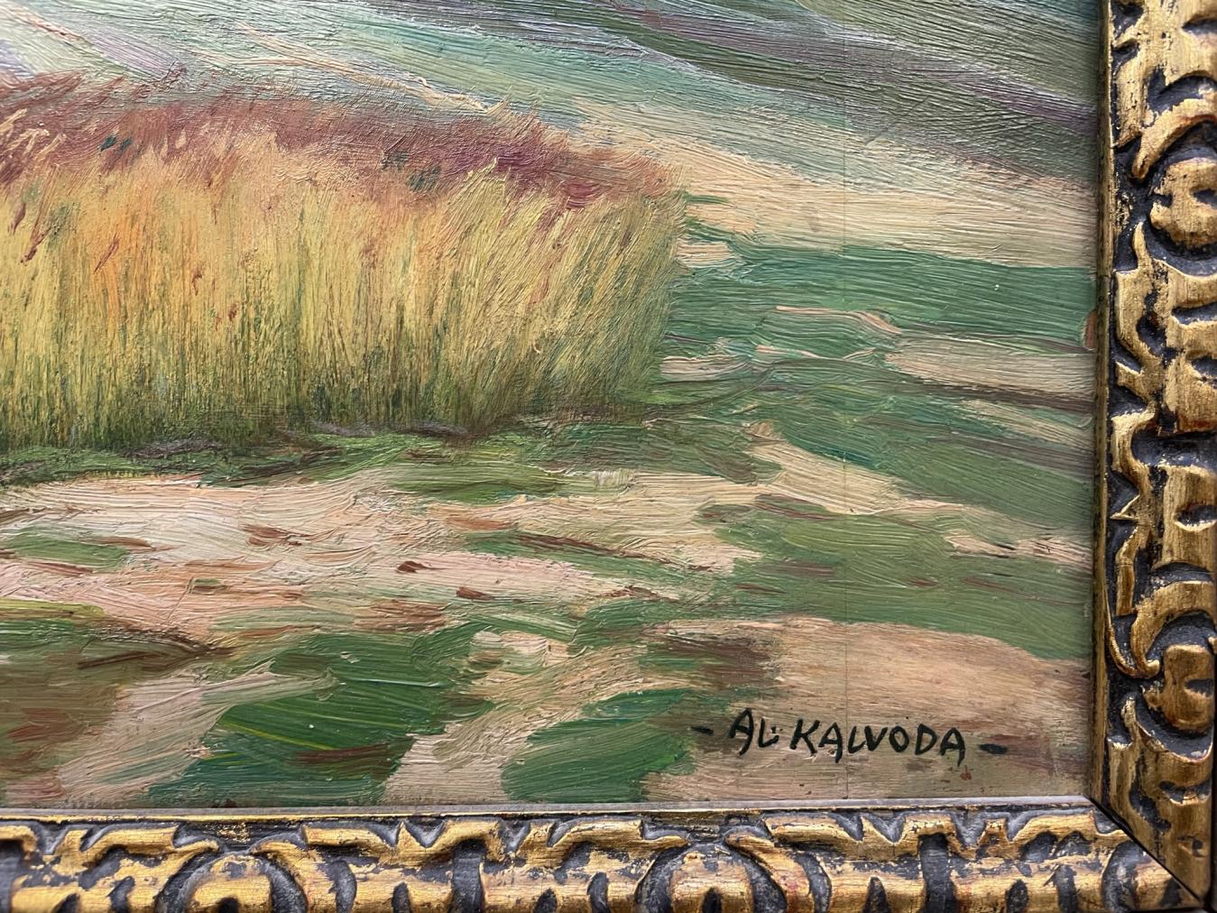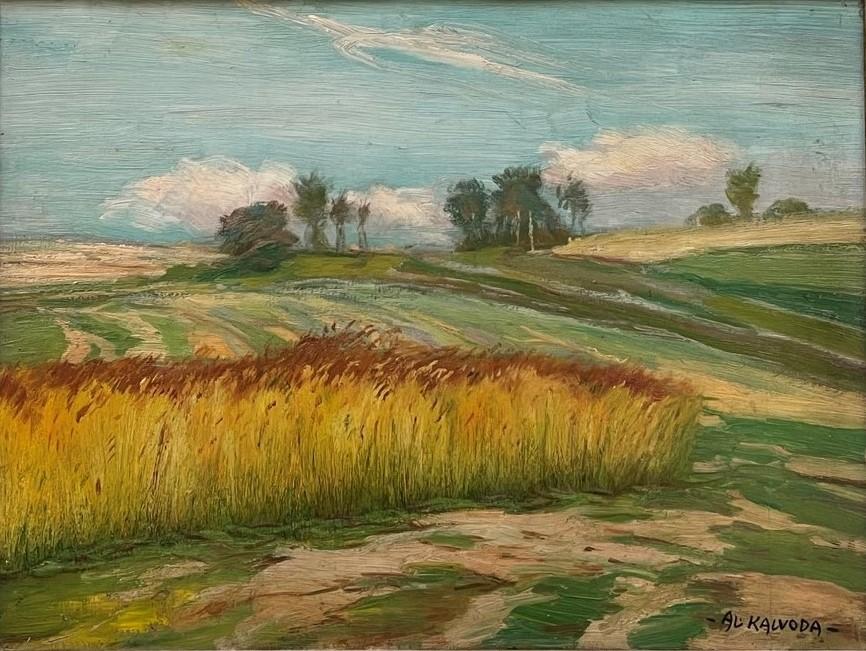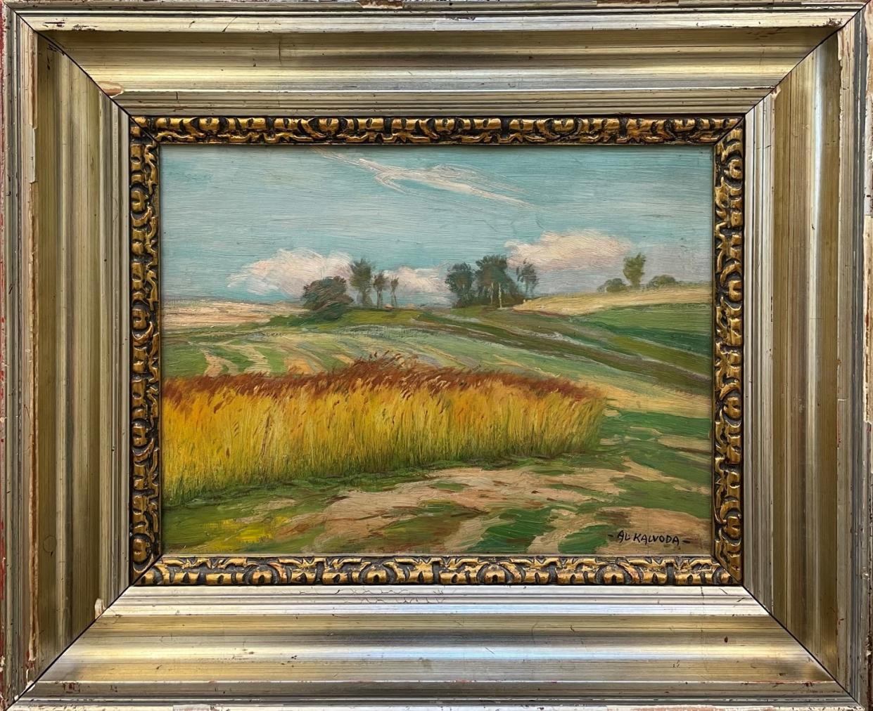 Olej na kartonu o rozměrech malby: výška 32 cm, šířka 42 cm, včetně rámu: výška 40 cm, šířka 52 cm. Signováno v pravém dolním rohu" Al. Kalvoda" Rám lokálně poškozen.