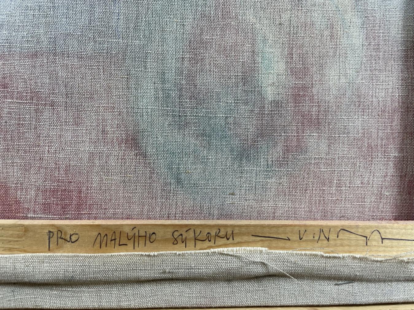Rozměr malby: 40 x 41cm, rozměr rámu: 41,5 x 42cm, kominovaná technika na plátně