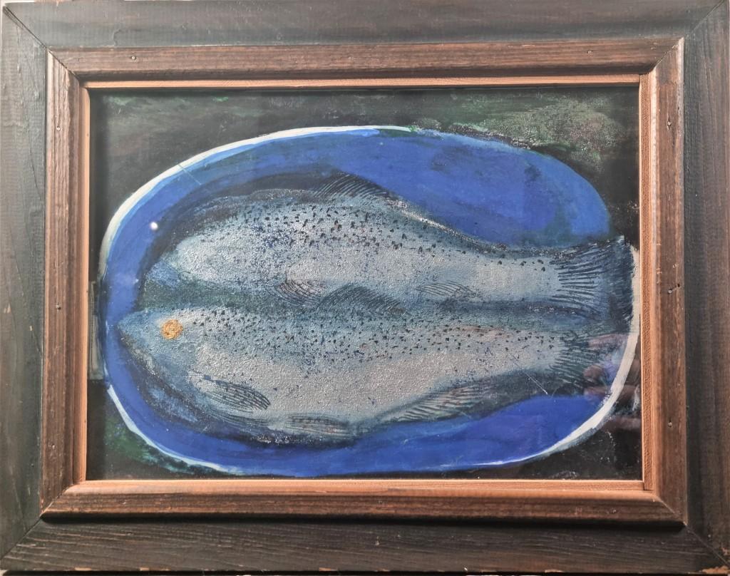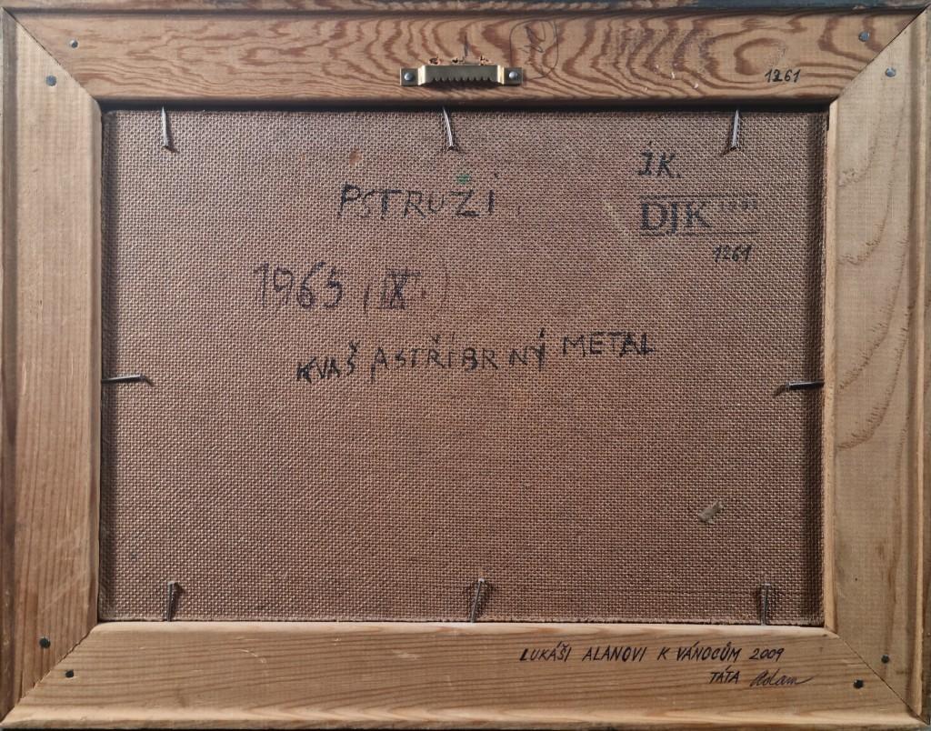 Malba kvaš a stříbrný metal na sololitu, rozměr díla 34 x 24 cm, rozměr s rámem 44 x 33 cm. Rámováno, zaskleno. Autorský rám, na zadní straně "DJK" - dílo Jánuše Kubíčka.