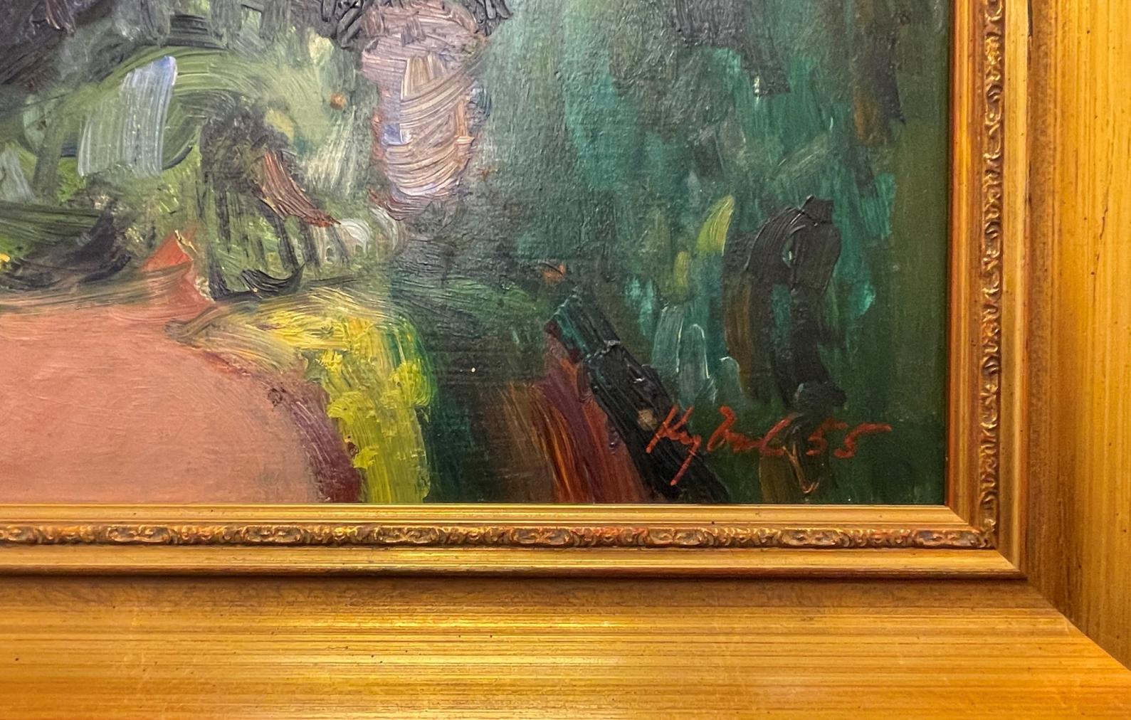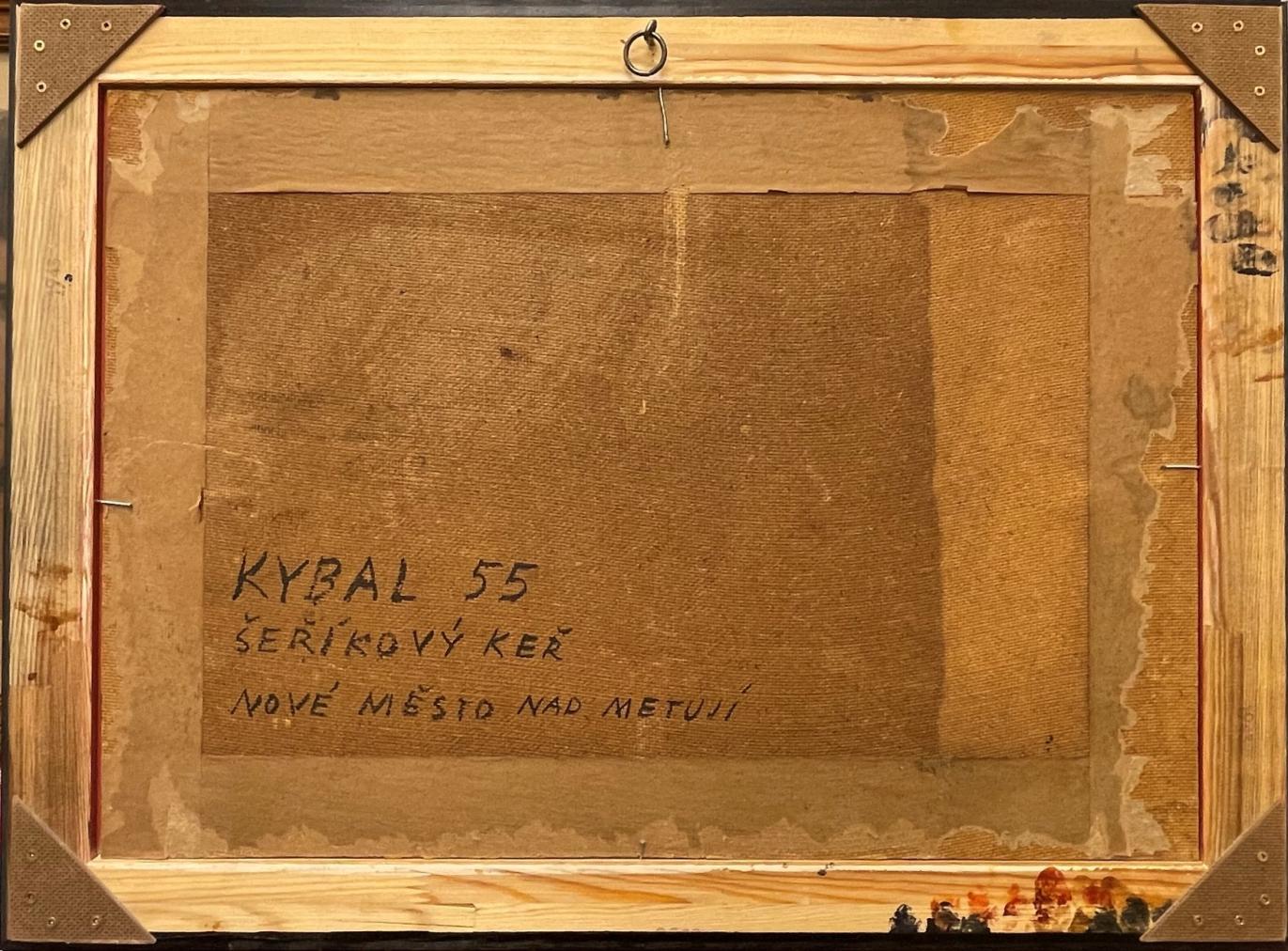Rozměr díla 48 x 33,5 cm, včetně rámu 58,5 x 44 cm, olej na sololitu, signováno v pravém dolním rohu "Kybal 55"
