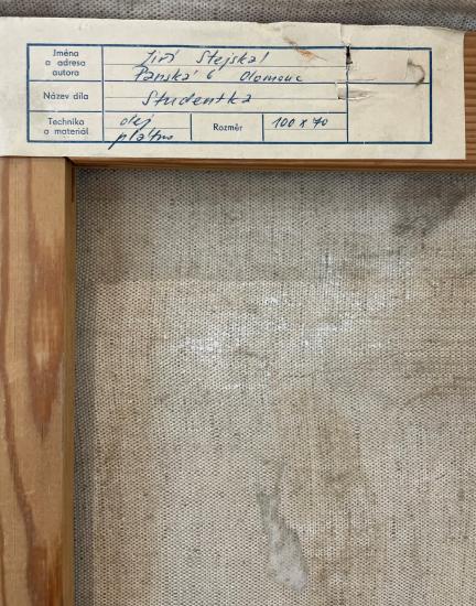 Rozměr díla 100 x 70 cm, bez rámu, olej na plátně, na zadní straně v levém horním rohu autorský štítek.