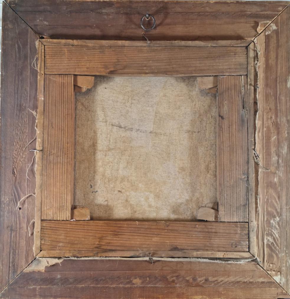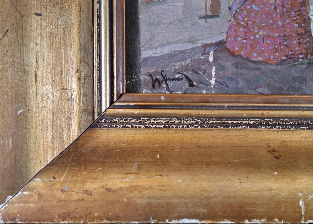 Rám lokálně poškozen, malba vedle podpisu lehce sedřena viz foto.