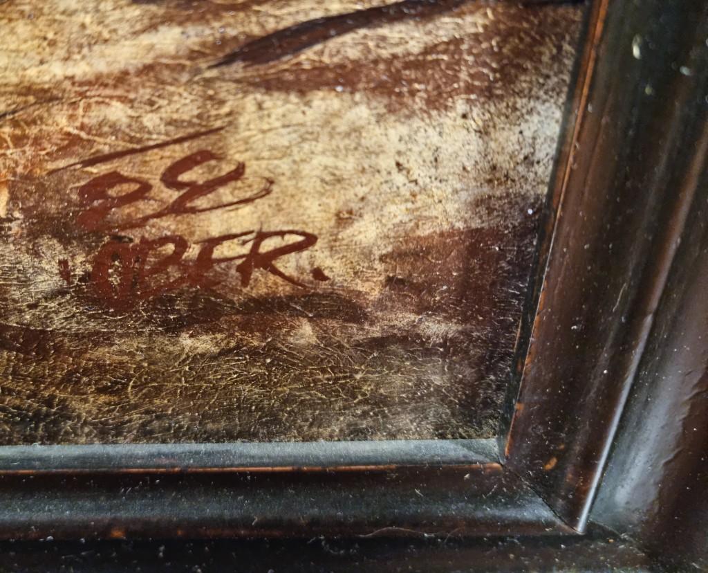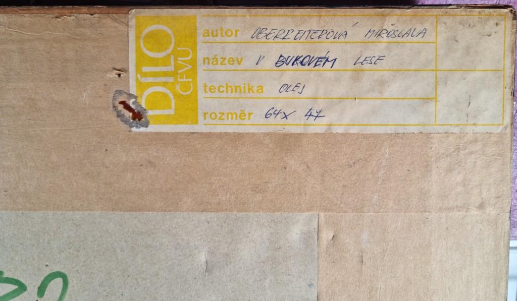 Olej na desce o rozměrech díla 64 x 47 cm, s rámem 76 cm x 59 cm. Signováno v pravém dolním rohu "Oberreiterová". Autorský štítek na zadní straně obrazu. Rámováno.