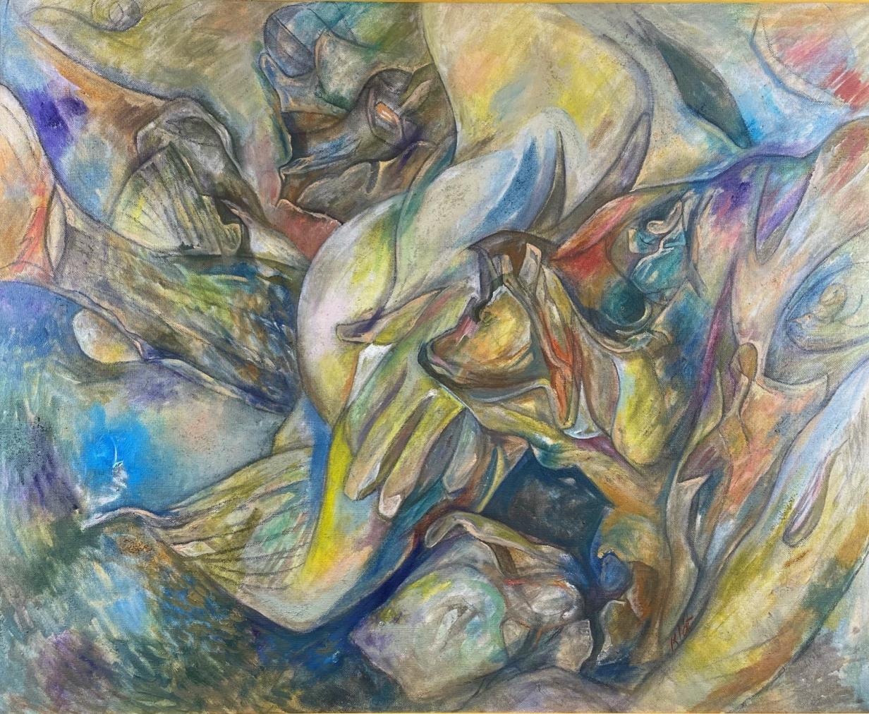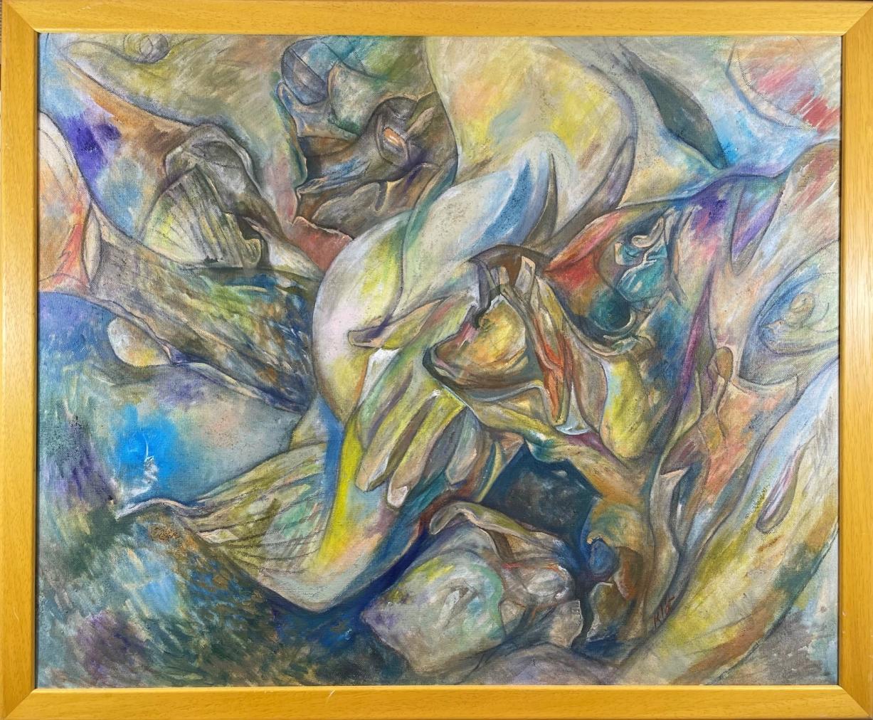 Rozměr malby: 64 x 80, rozměr rámu: 71 x 86 cm, kombinovaná technika na plátně signováno v pravém dolním rohu " klát"