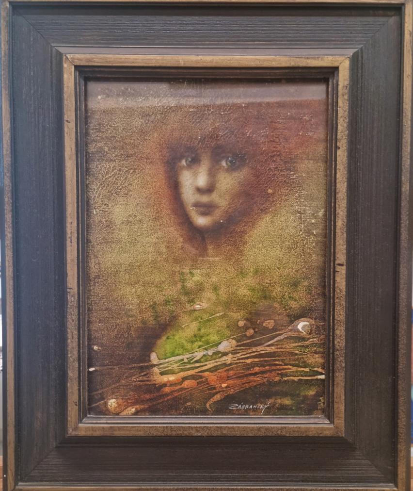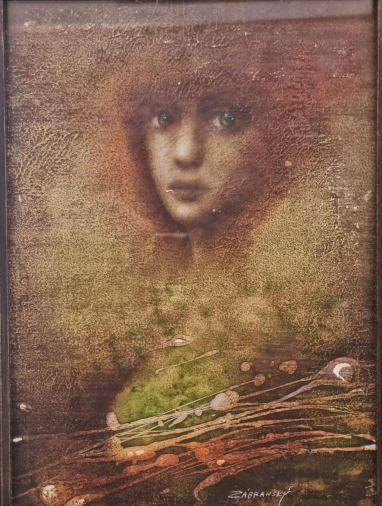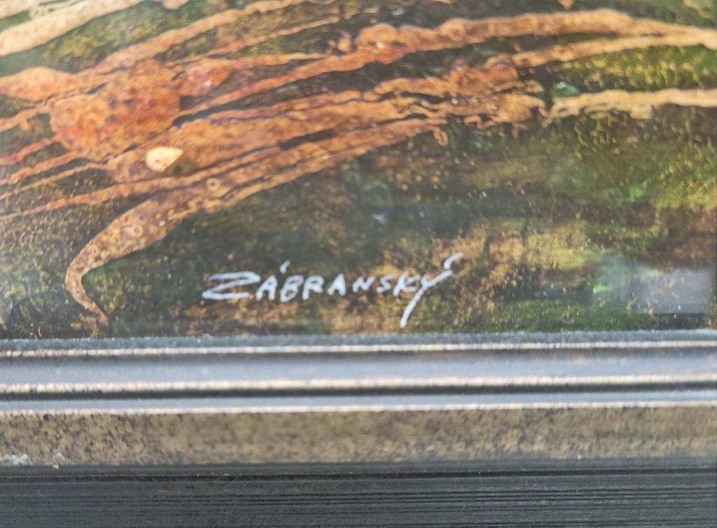 Obraz, kombinovaná technika / pastel, olej/ na kartonu, rozměr kresby 20 x 28 cm, rám 35 x 43 cm, signováno Zábranský.