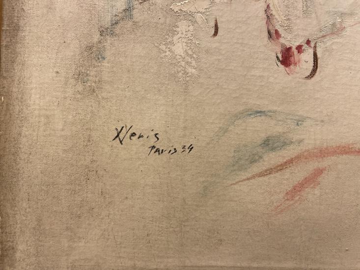 Rozměr díla 47 x 63 cm, bez rámu, olej na plátně, signováno v levém dolním rohu "Weris Paris 34"