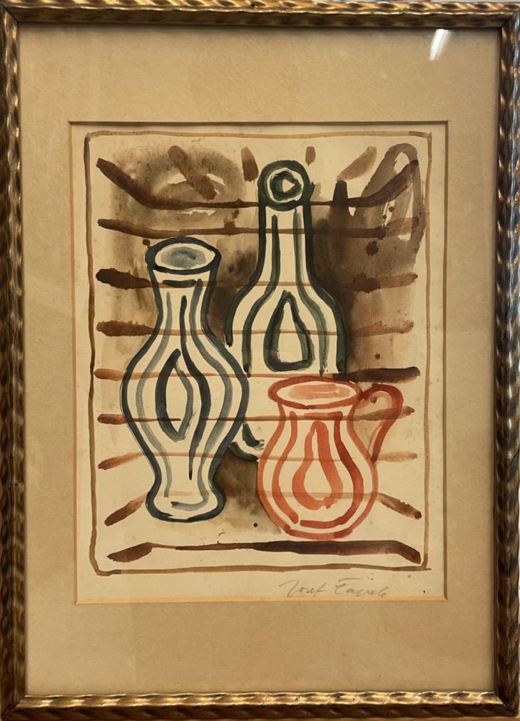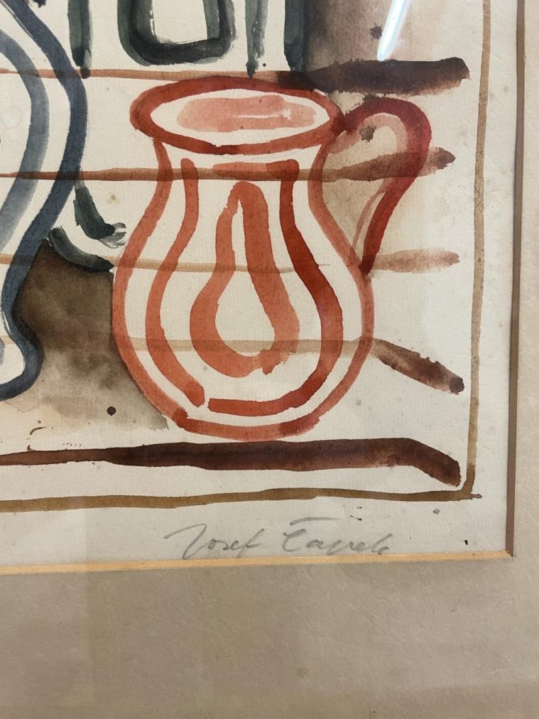 Rozměr obrazu 25 x 30 cm, včetně rámu 33 x 45 cm, za sklem, akvarel na papíře signováno v pravé dolní části " Josef Čapek " .