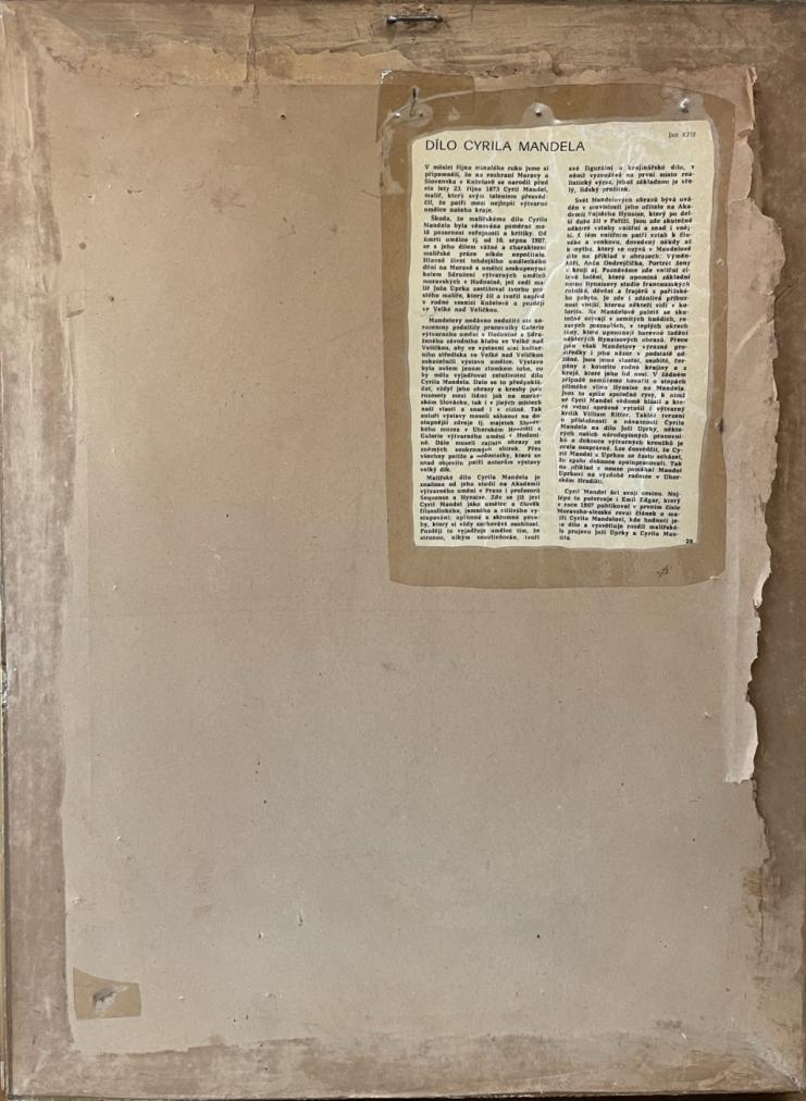 Rozměr obrazu 40 x 27 cm, včetně rámu 52 x 40 cm, olej na plátně, signováno v levém dolním rohu rohu " C. Mandel " .