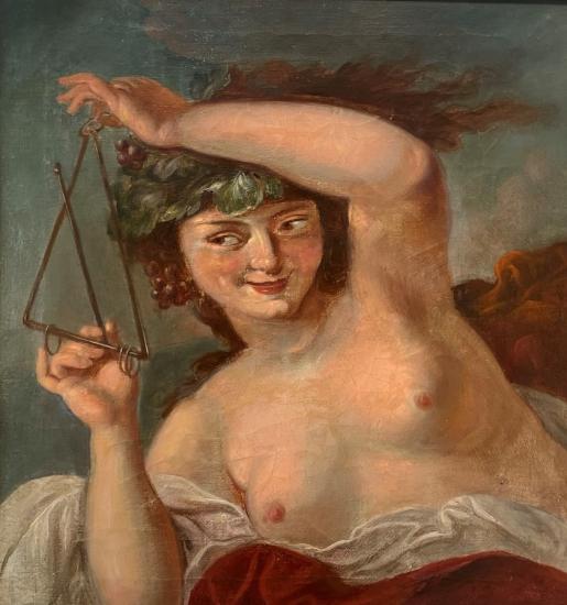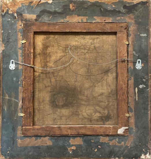 Obraz o rozměrech díla 39 x 42, včetně rámu 59 x 62 cm, olej na plátně, štítek "Giordano". Lehká krakelace.