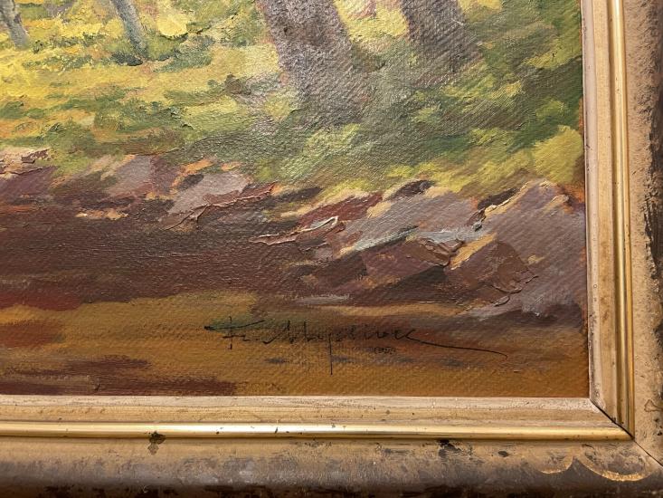 Rozměr díla 88 x 65 cm, včetně rámu 99 x 77 cm, olej na plátně, signováno v pravém dolním rohu "Fr. Myslivec 1959"