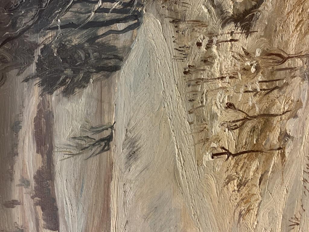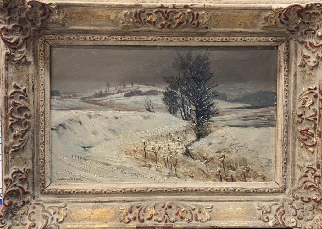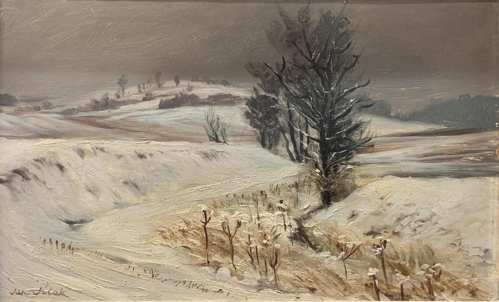 Olej na sololitu o rozměrech malby 46 x 28 cm, s rámem 67 x 49 cm. Signováno v levém dolním rohu "Jan Jílek"