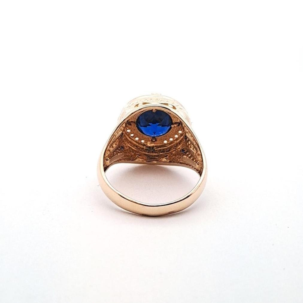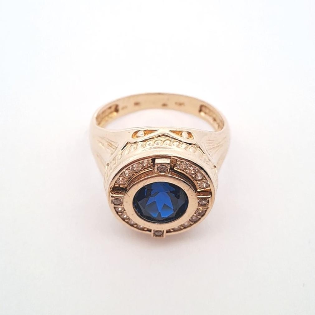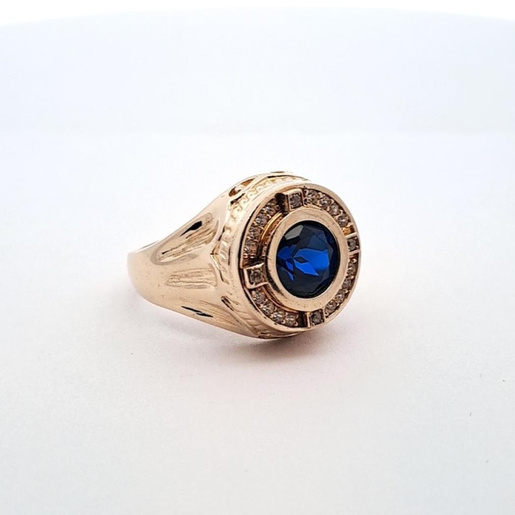 Pánský zlatý prsten s modrým kamenem a zirkony, vel. 63