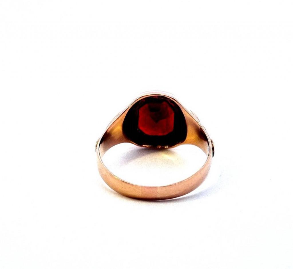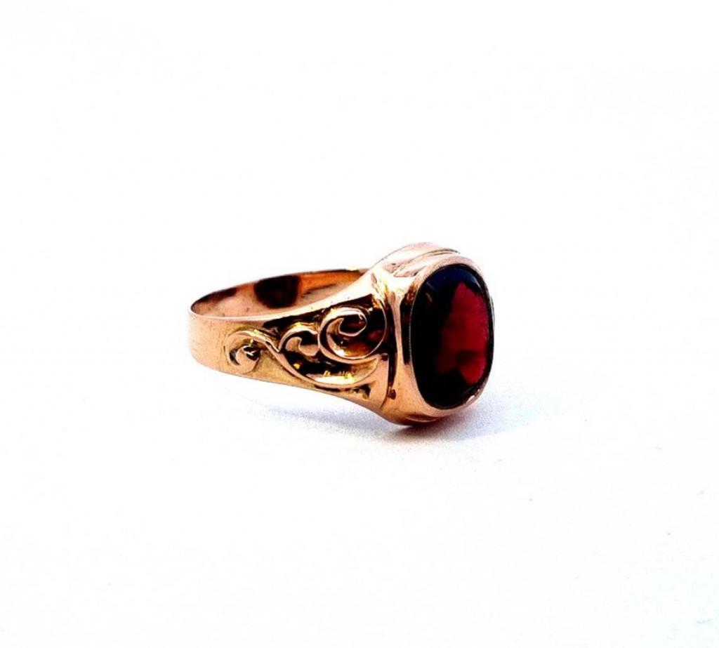 Starožitný pánský zlatý prsten s almandinem, Rakousko-Uhersko, vel. 66
