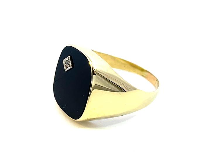 Starožitný zlatý pánský prsten s diamantem a onyxem, vel. 68