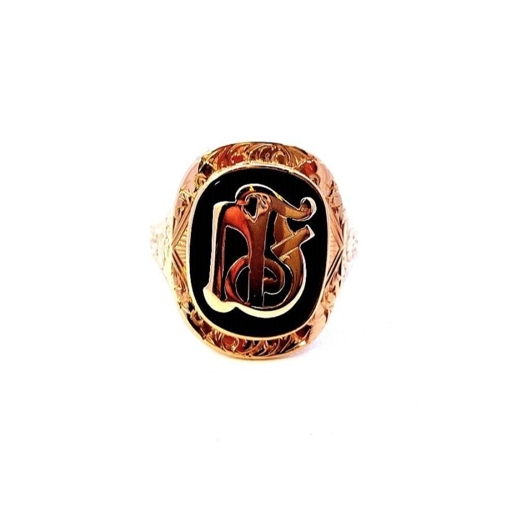 Starožitný zlatý pánský prsten s onyxem, vel. 64
