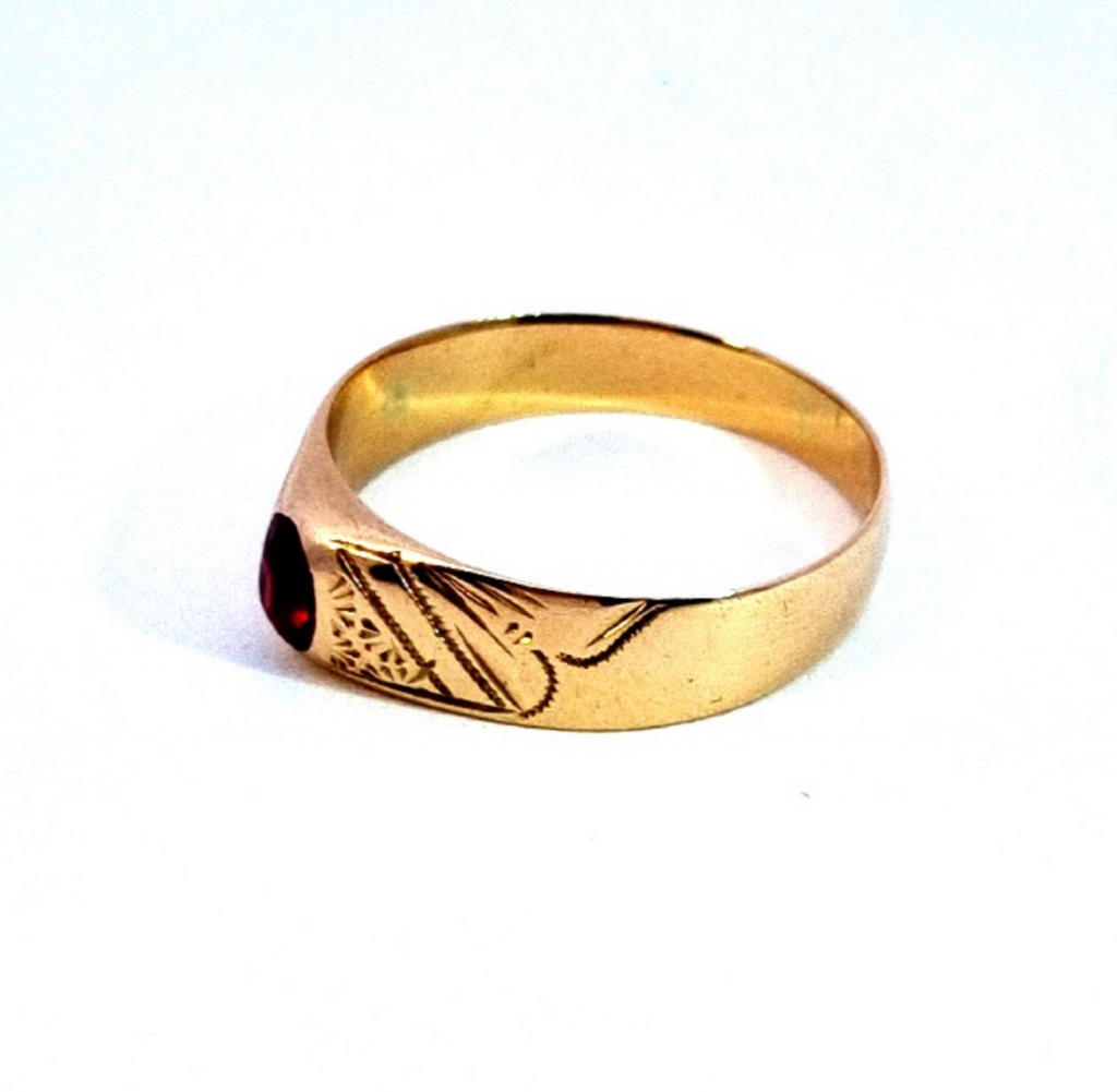 Starožitný zlatý prsten s almandinem, Rakousko-Uhersko, vel. 61
