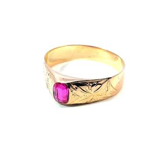Prsten z růžového zlata o ryzosti 585/1000, punc klas + 585 a labuť. Velikost 72, váha 7,91 g, v nejširším bodě 20,5 mm, rozměr kamene 16,5 x 15 mm. Kámen je syntetický.
