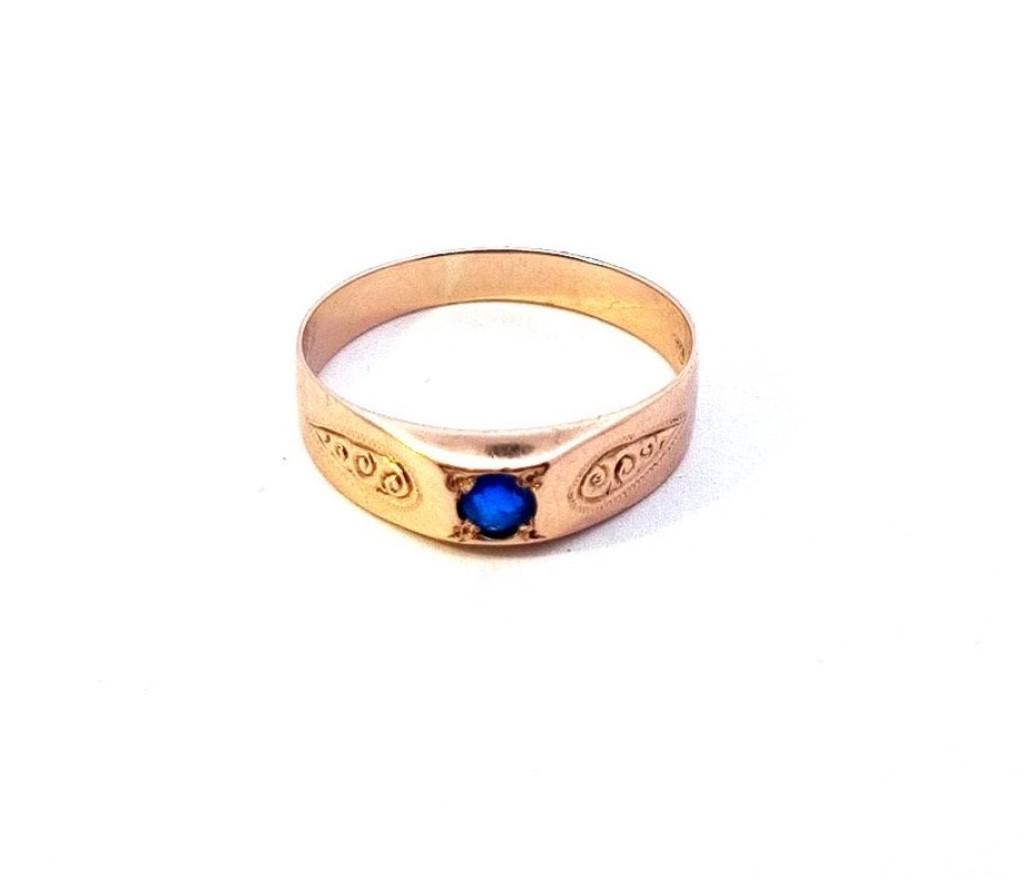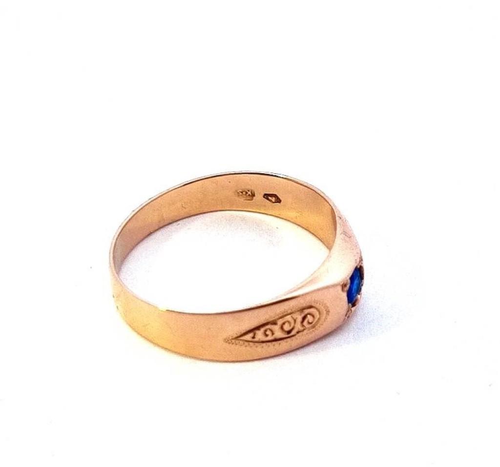 Starožitný zlatý prsten s modrým kamínkem, Rakousko-Uhersko, vel.56