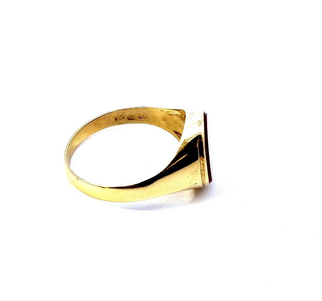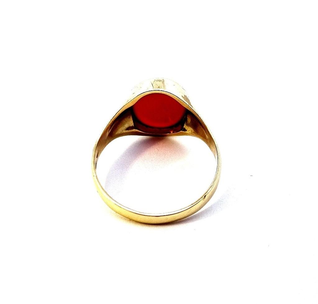 Zlatý pánský prsten s červeno-hnědým kamenem, vel. 68