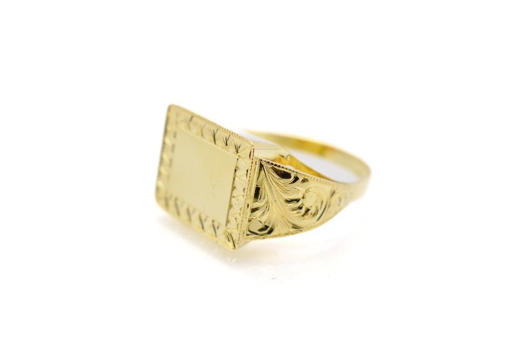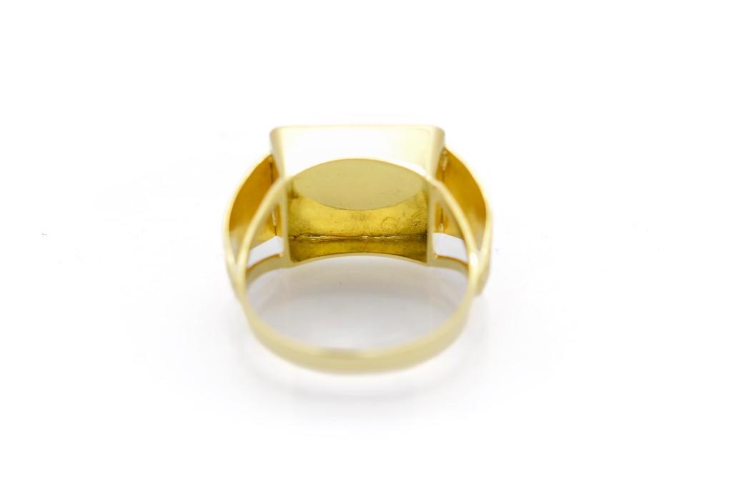 Zlatý prsten o ryzosti 585/1000, punc labuť, váha 5,17 g, velikost 62, v nejširším bodě 19 mm.