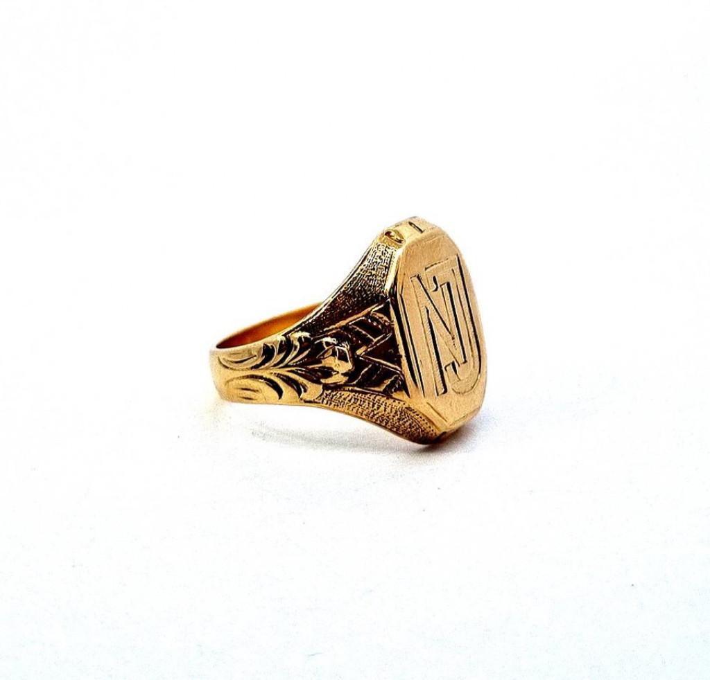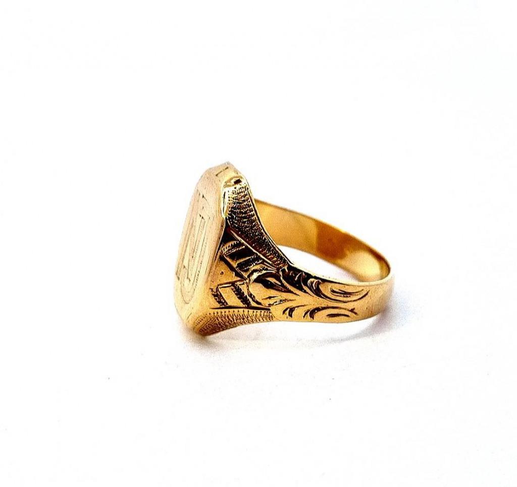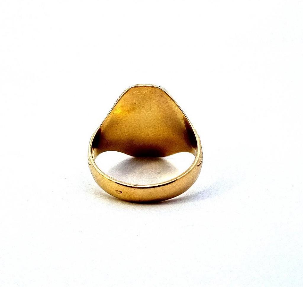 Zlatý prsten ze žlutého zlata o ryzosti 585/1000, punc labuť, váha 6,07 g, velikost 60, v nejširším bodě 18 mm.