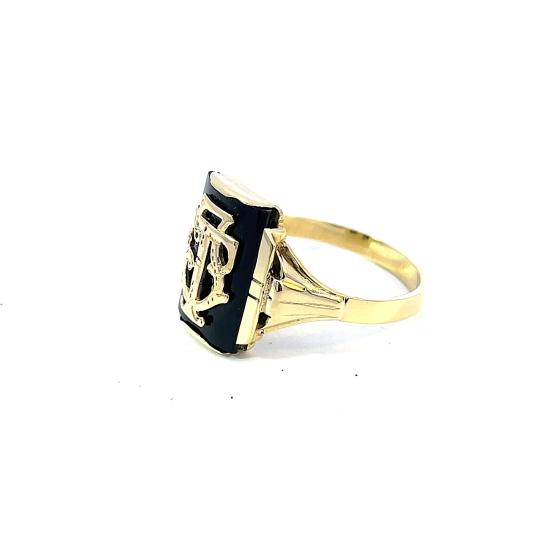 Zlatý prsten s onyxem a monogramem, vel. 66