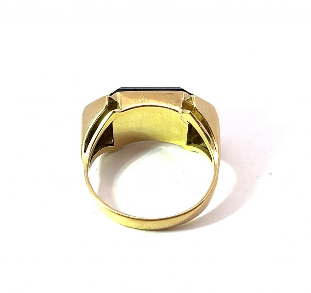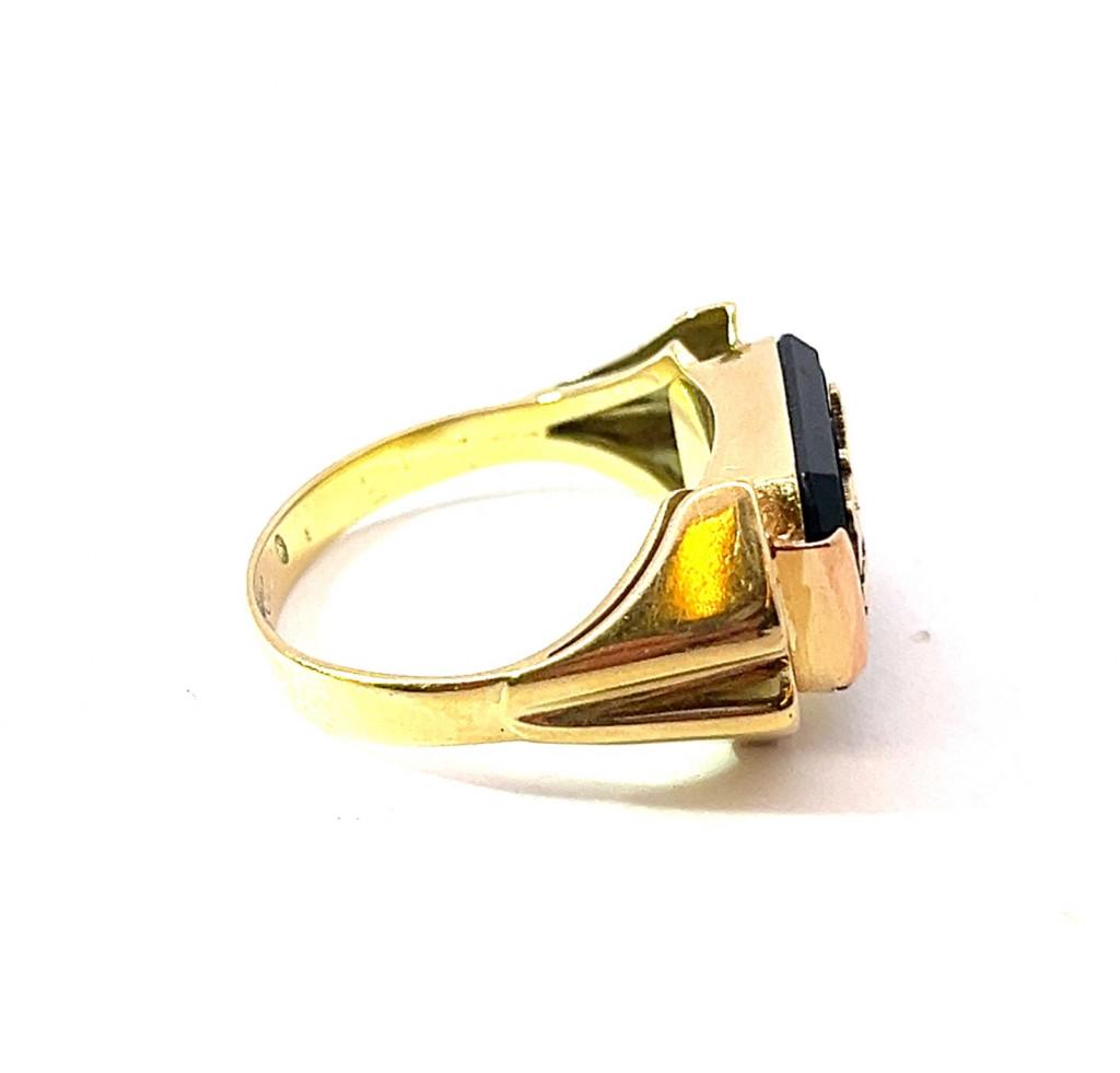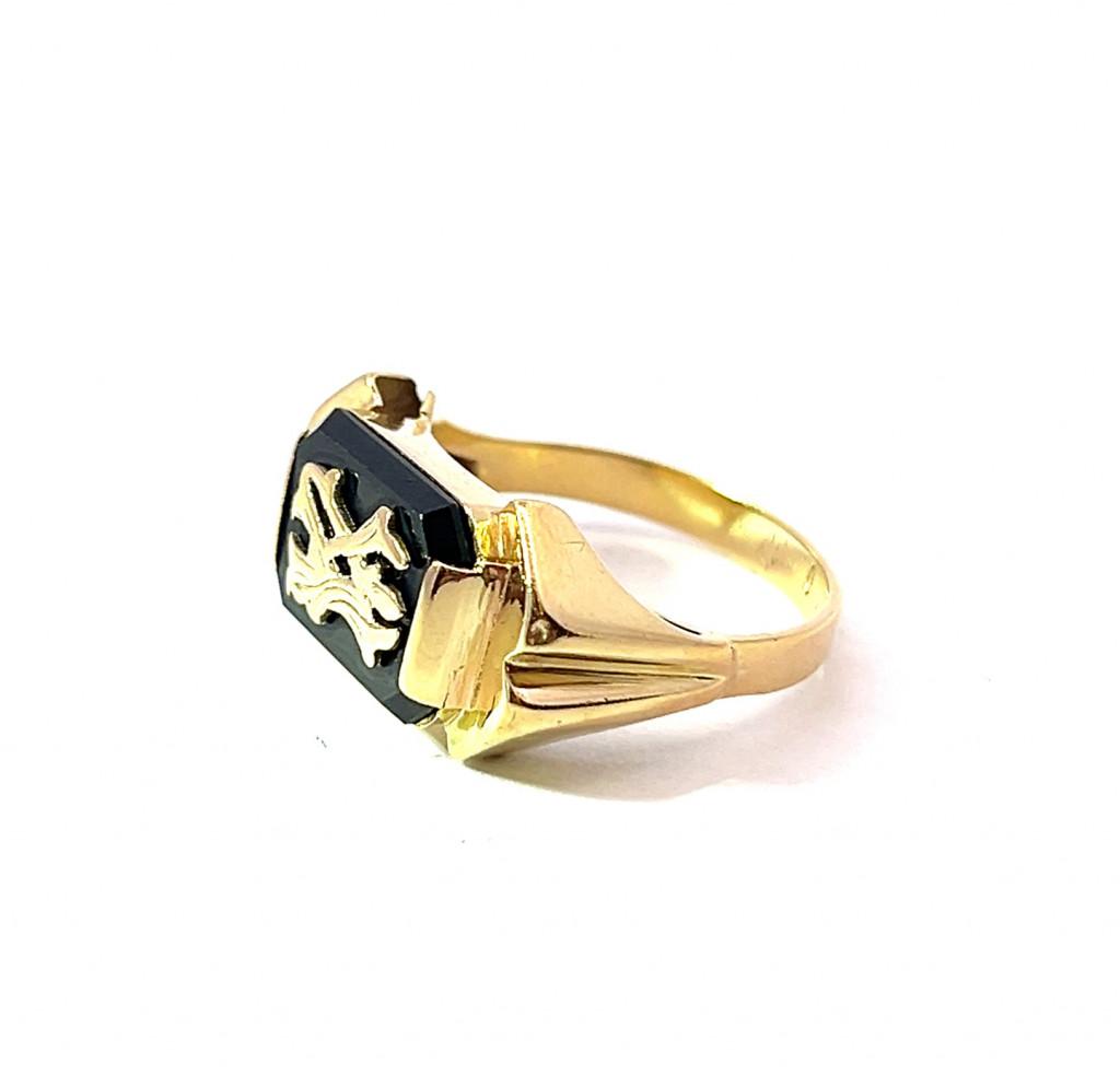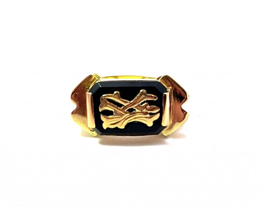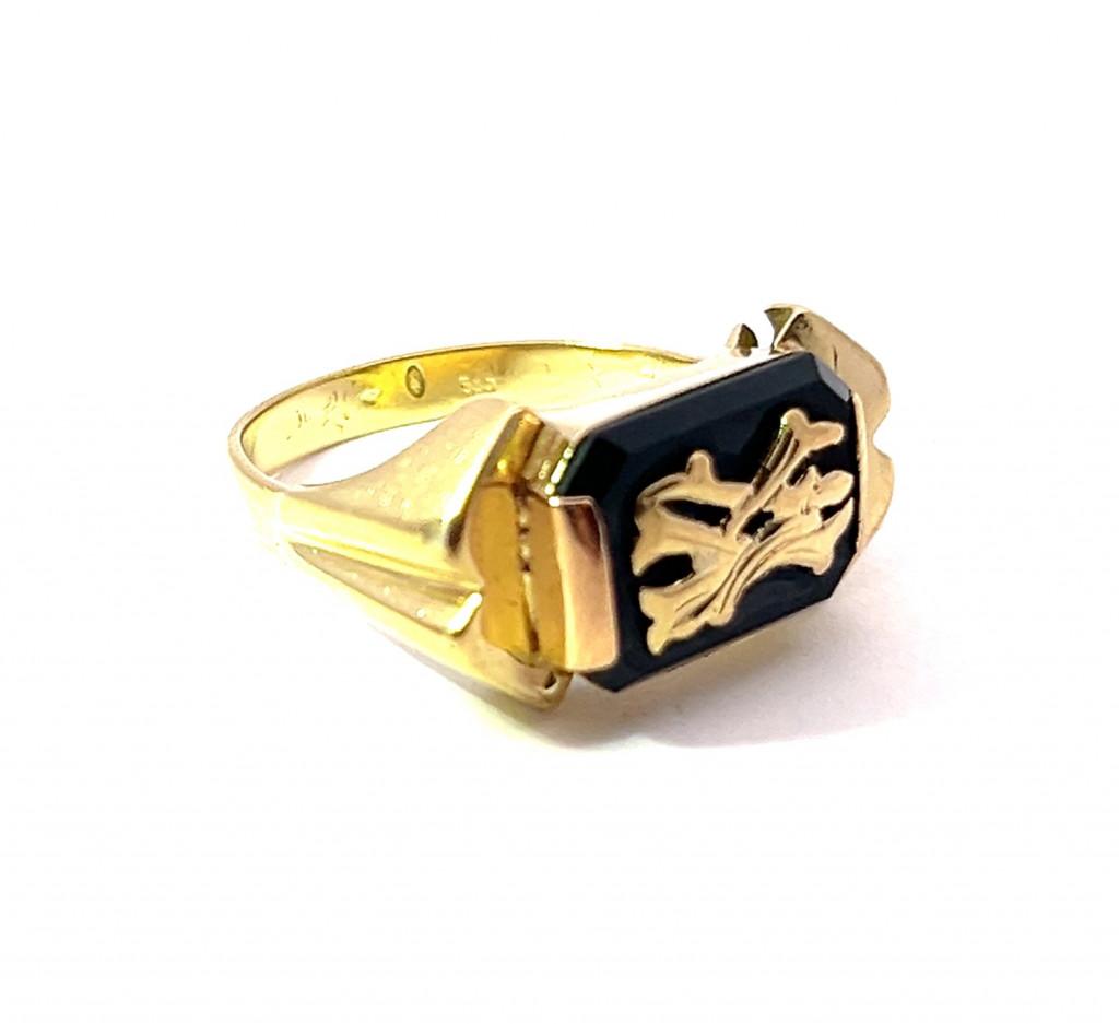 Zlatý prsten s onyxem s monogramem, vel. 59