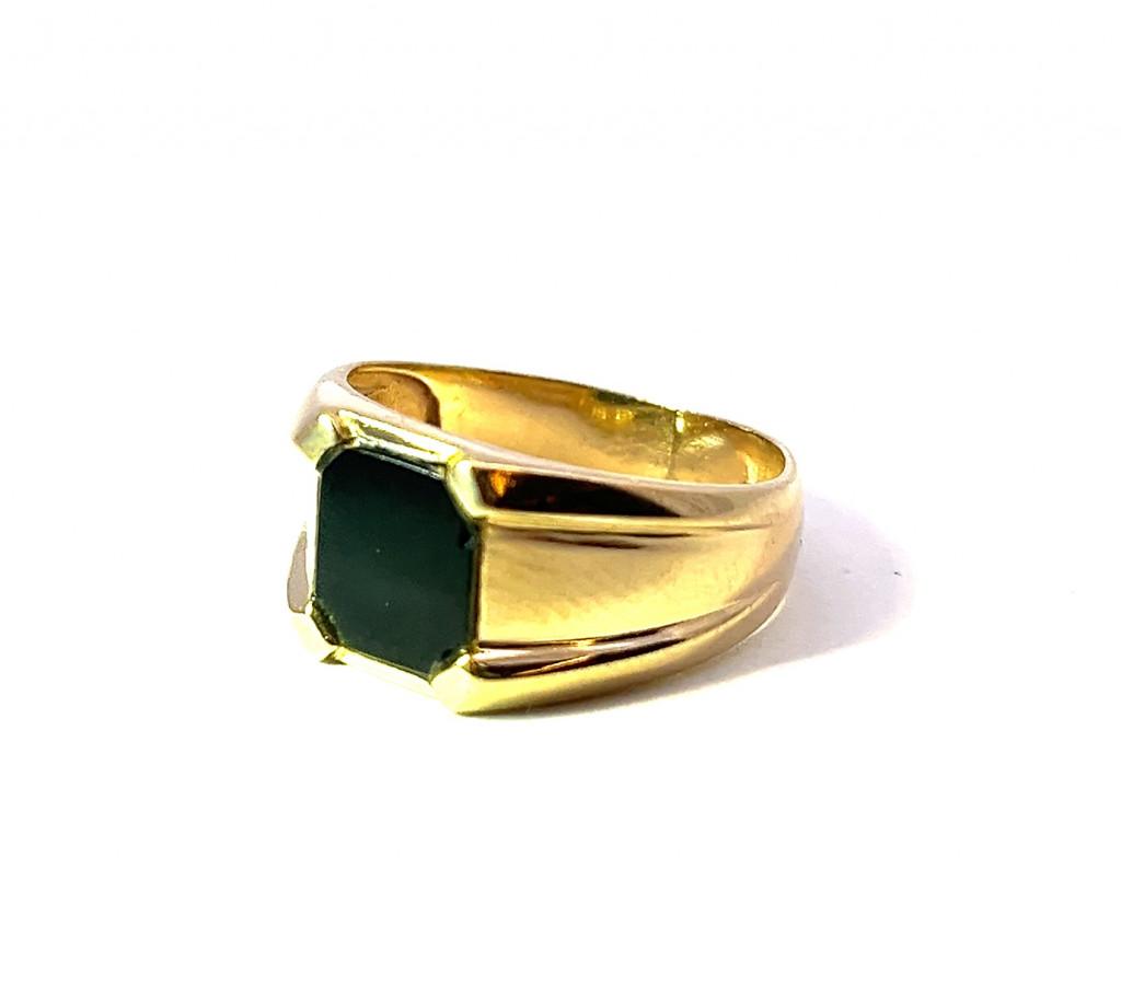 Zlatý prsten o ryzosti 585/1000 s puncem labutě. Velikost prstenu je 58, váha 4,45 g, v nejširším bodě 11 mm. Velikost kamene je 0,9 x 0,6 cm.