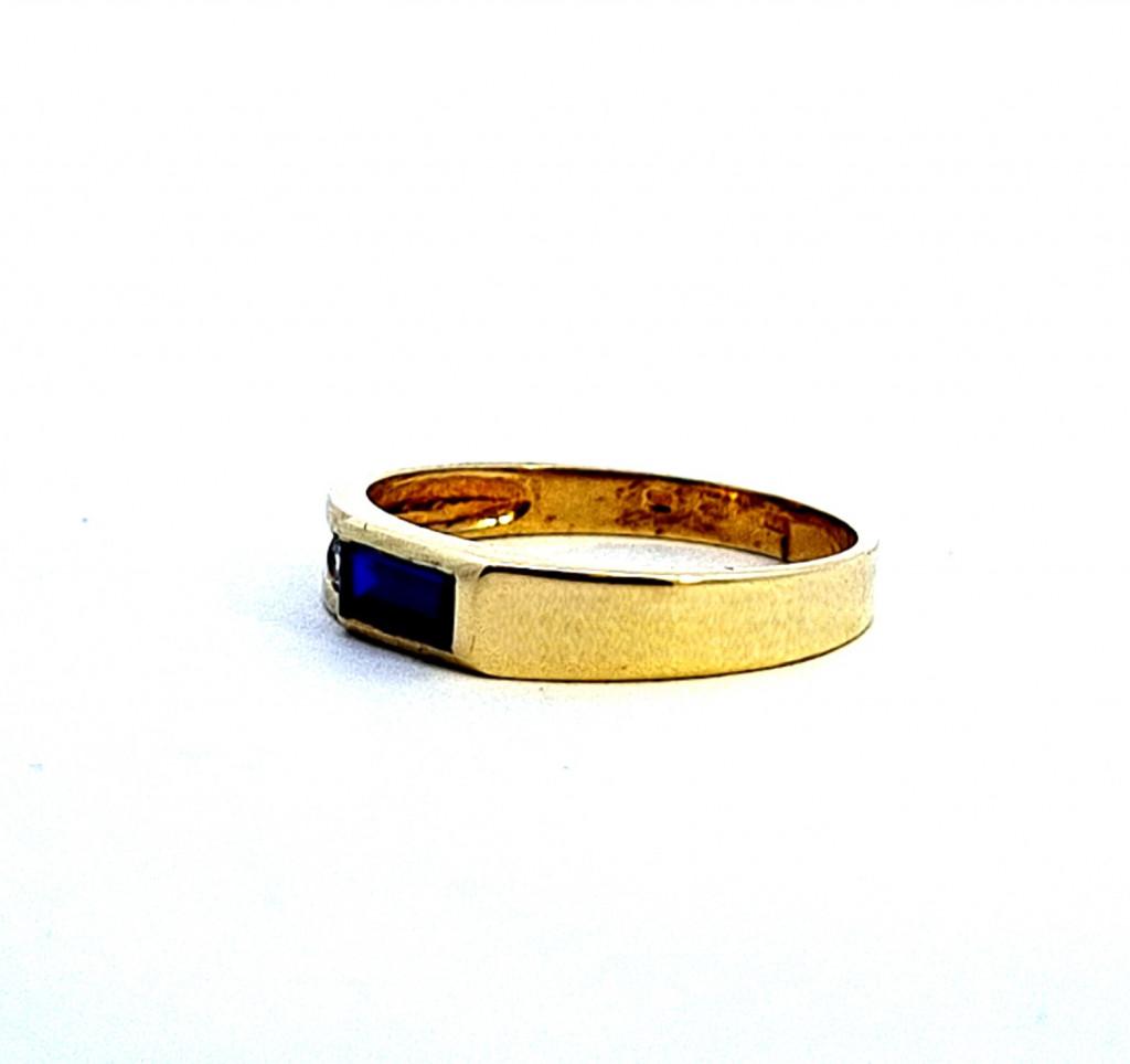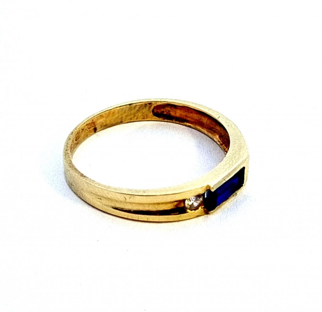 Zlatý prsten se safírem a zirkonem, vel. 56