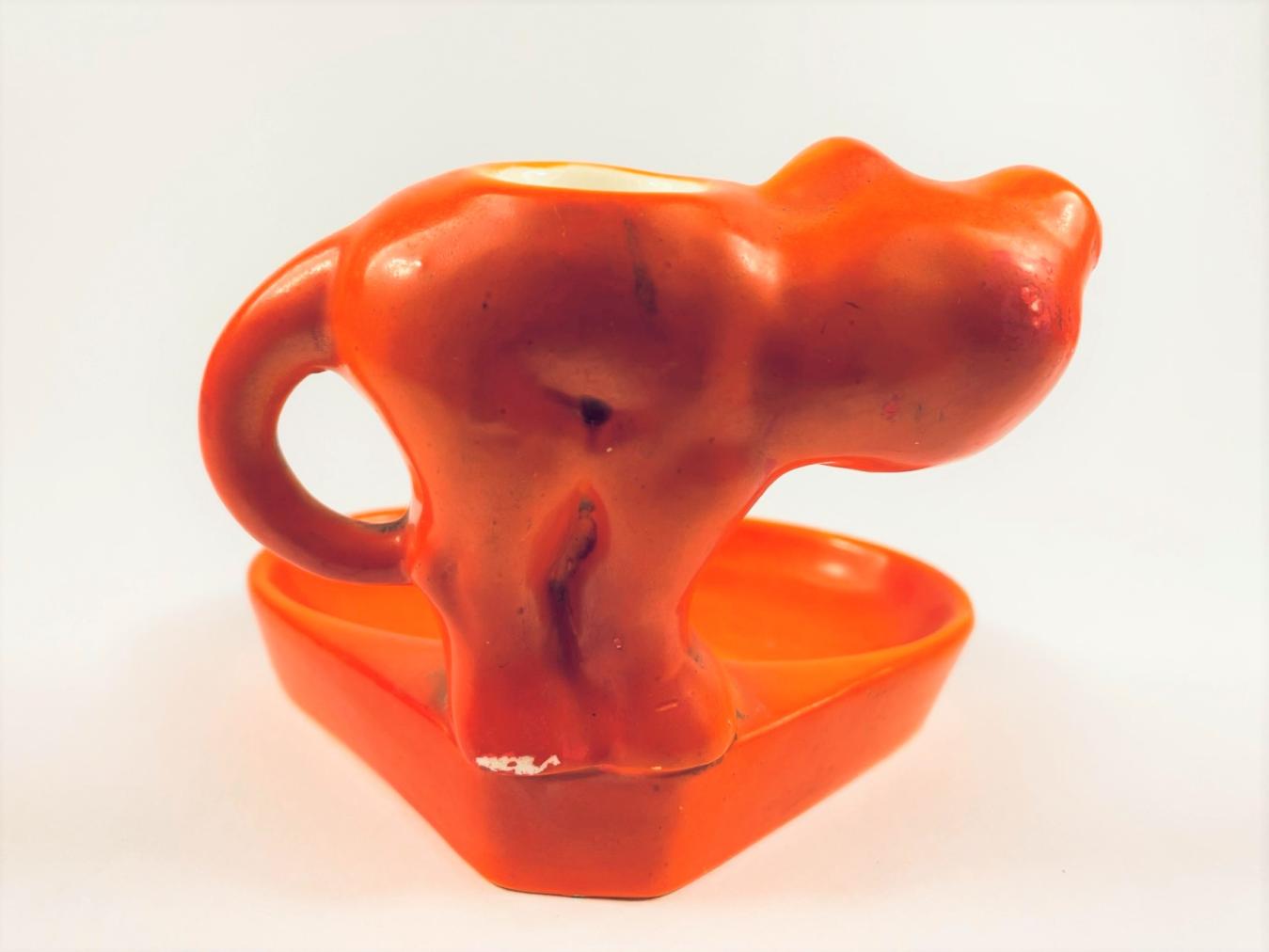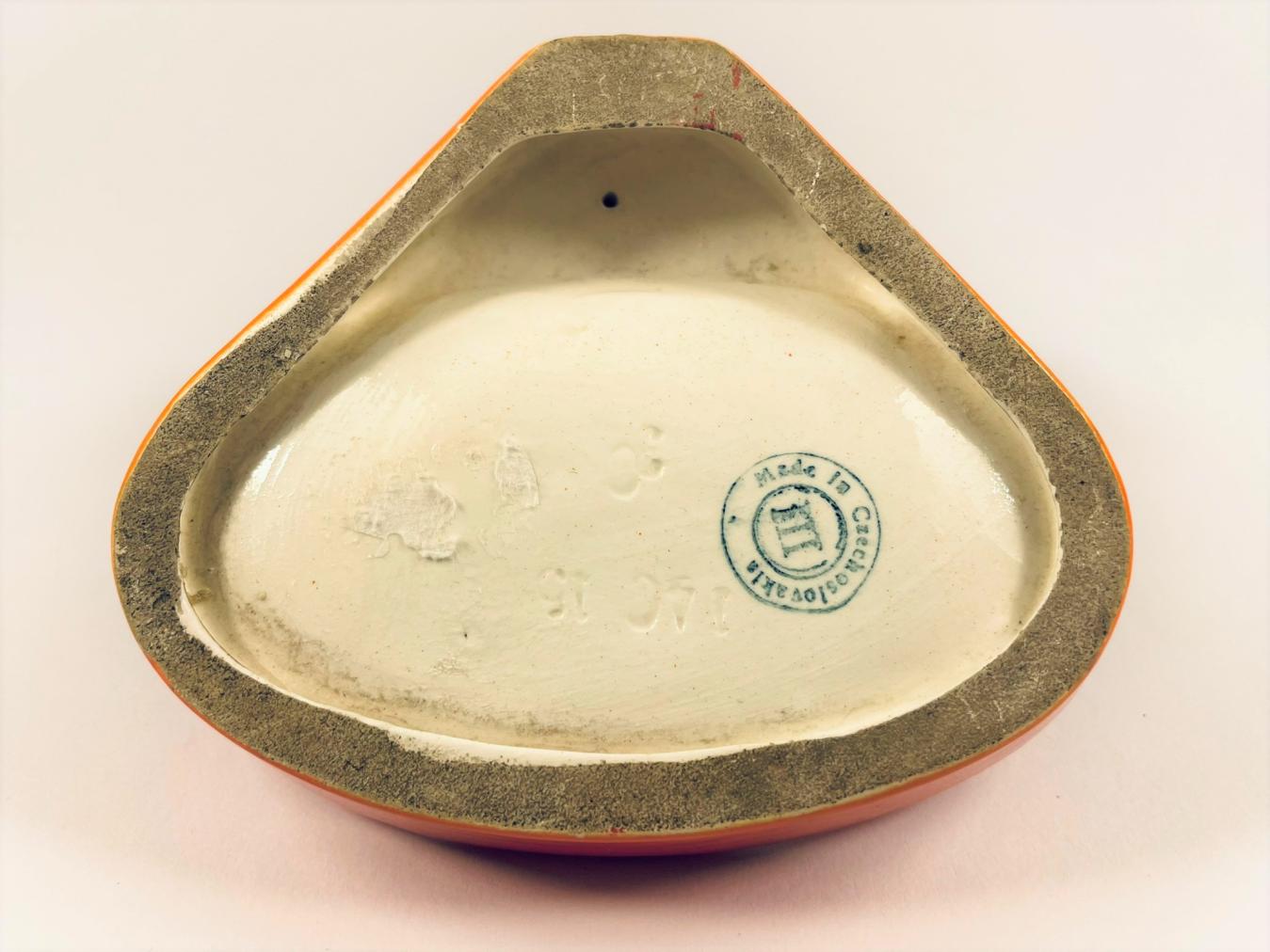 Keramický popelník o rozměrech: výška 8 cm, v nejširším bodě 11 cm, značeno zespod "Made in Czechoslovakia"