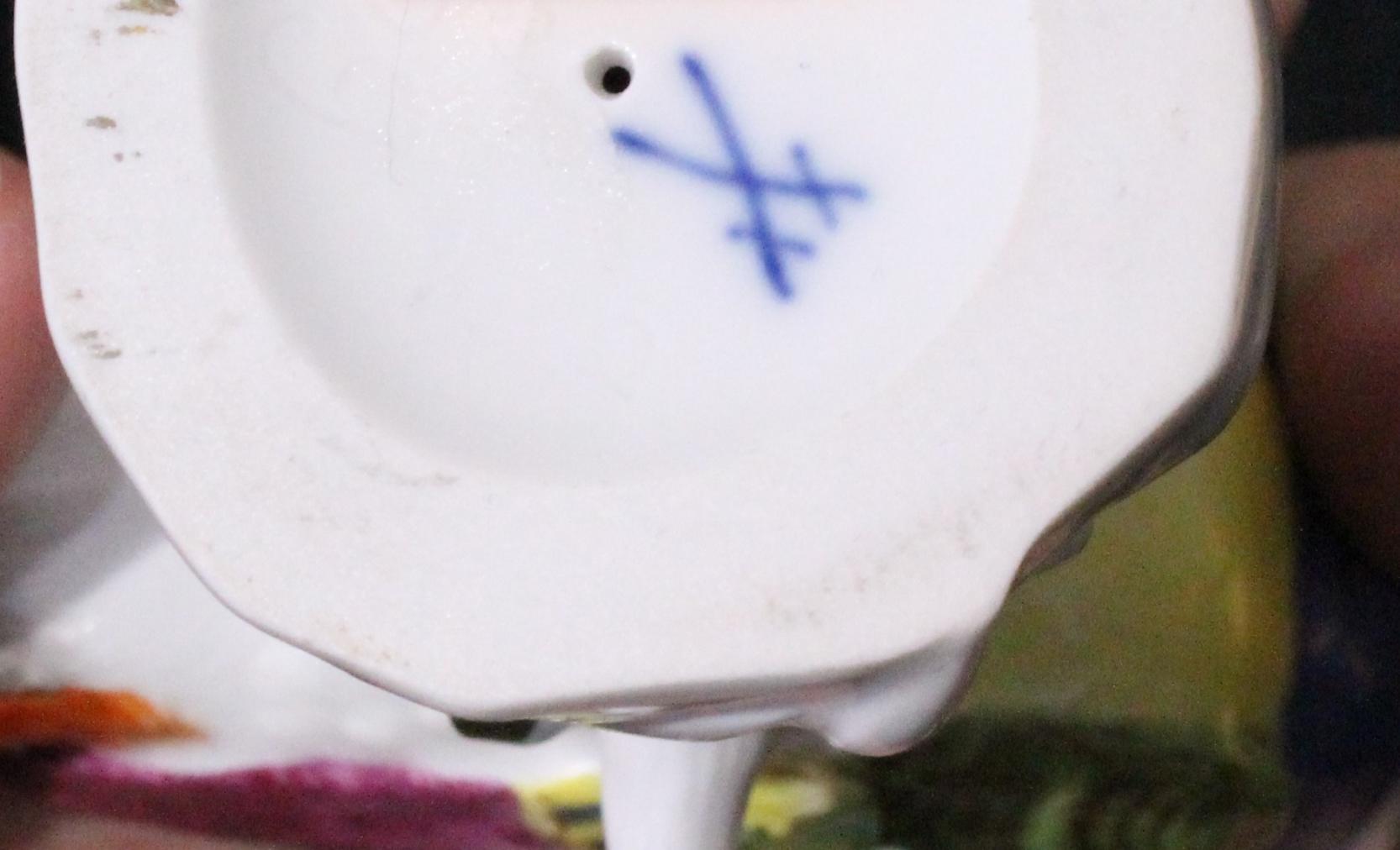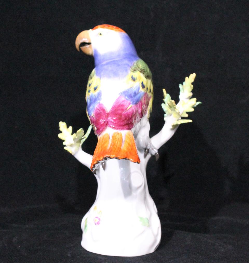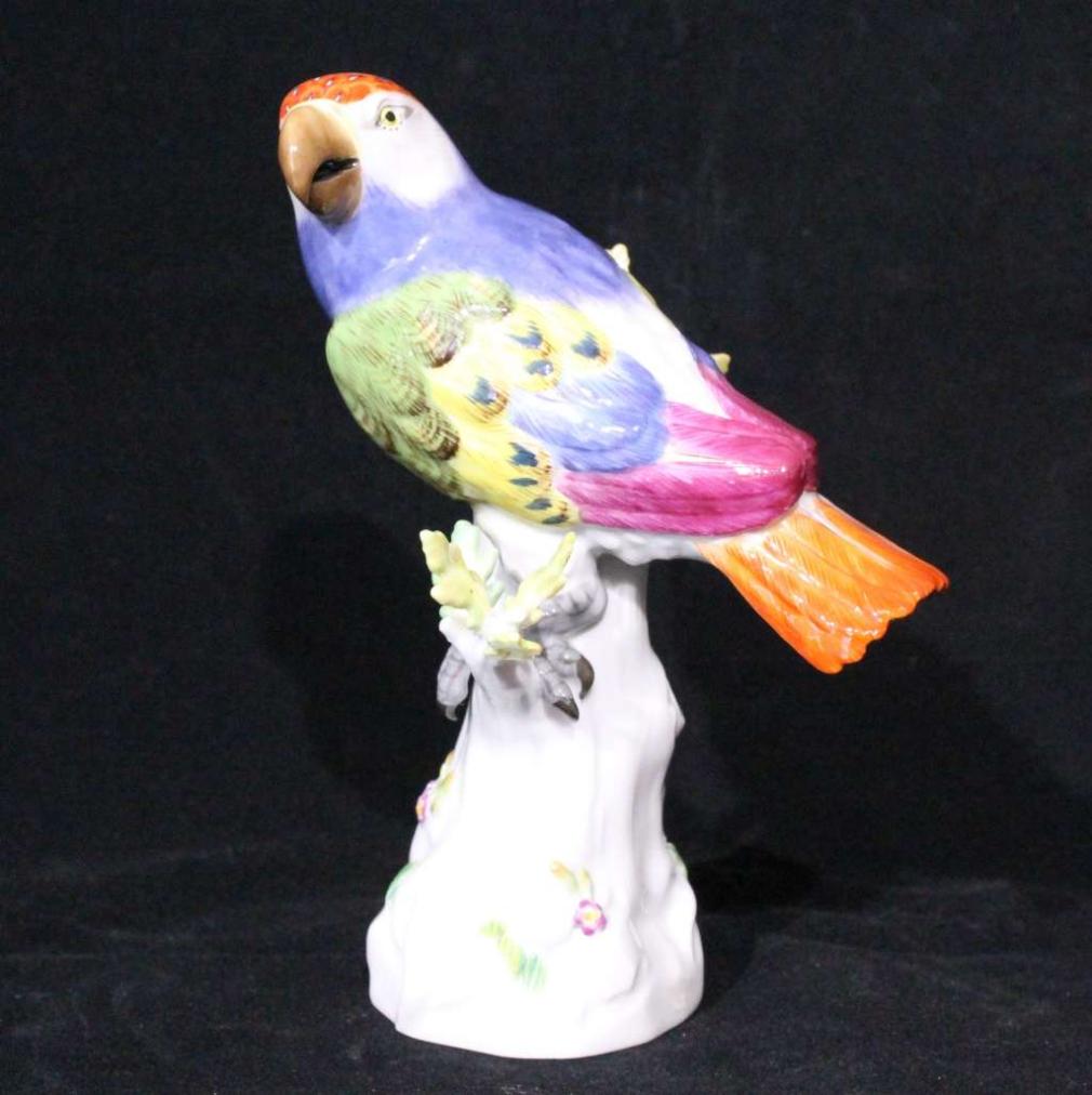 Nádherný míšeňský papoušek je vysoký 14 cm. Perfektní stav.
