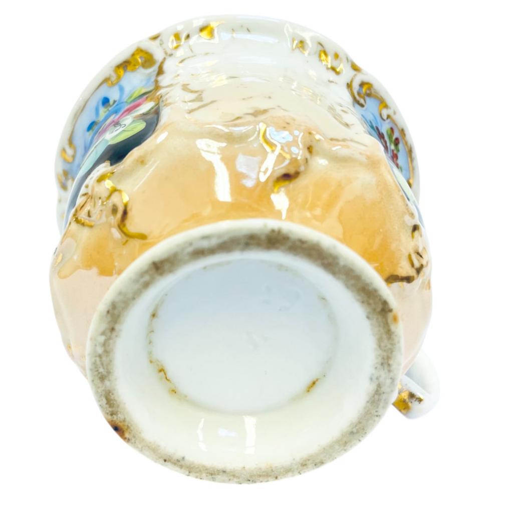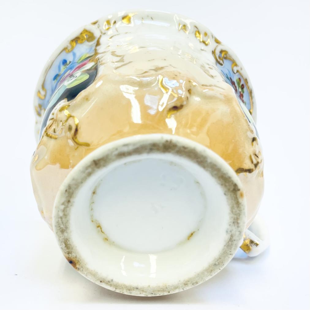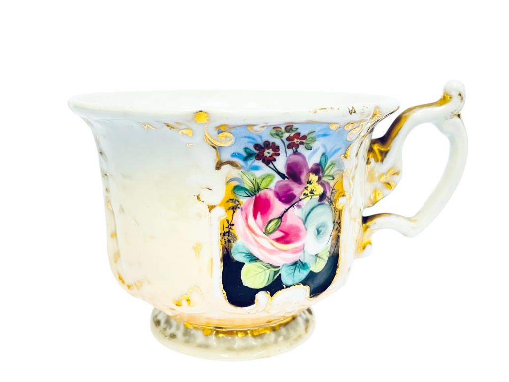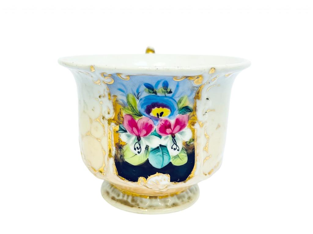 Výška šálku 7 cm, průměr hrdla šálku 9 cm, výška podšálku 3 cm, průměr podšálku 15 cm. Značeno písmenem A.
