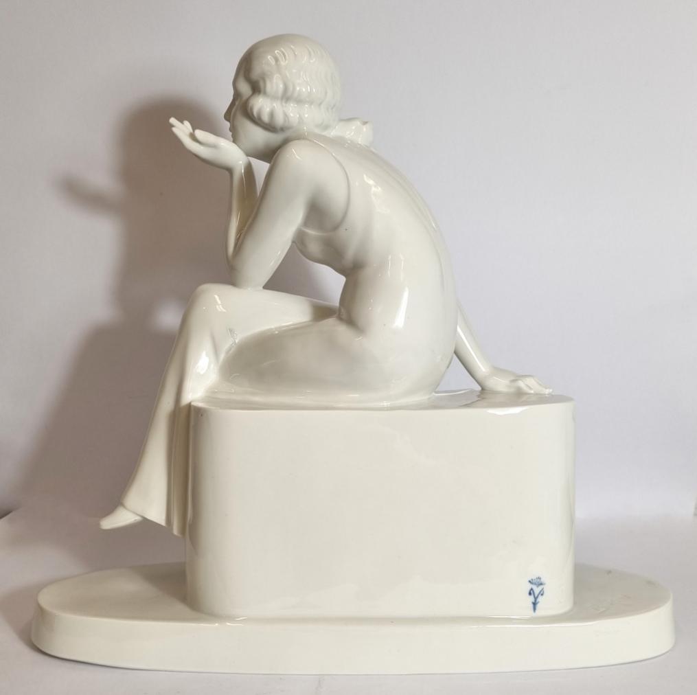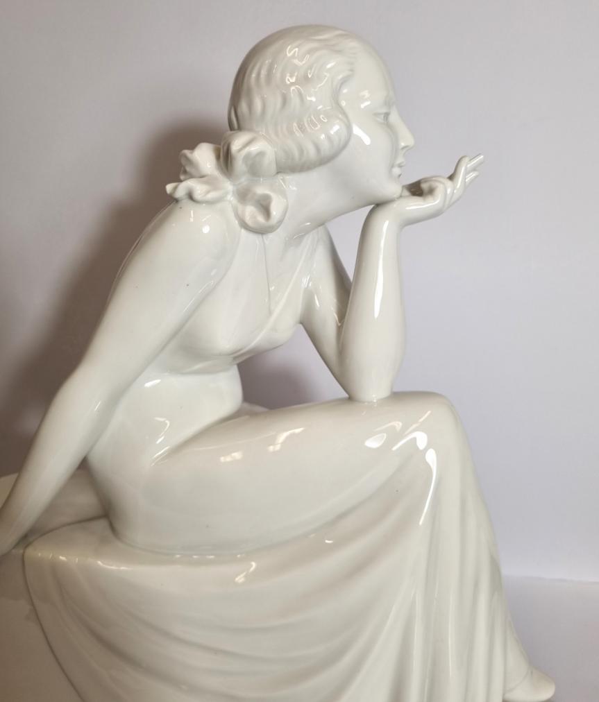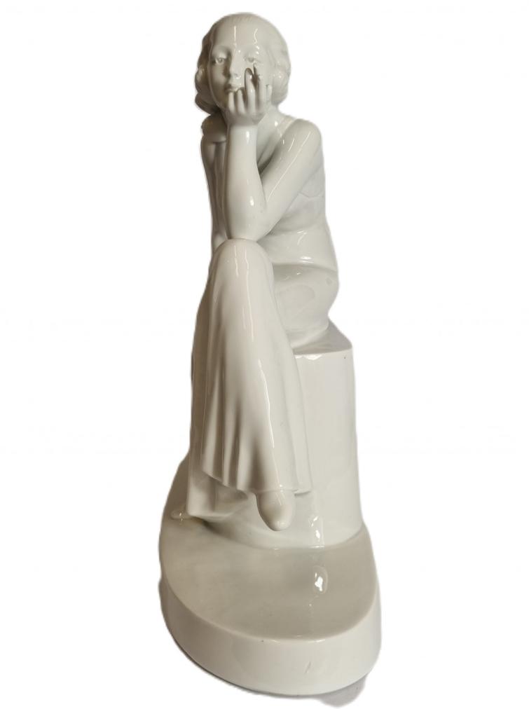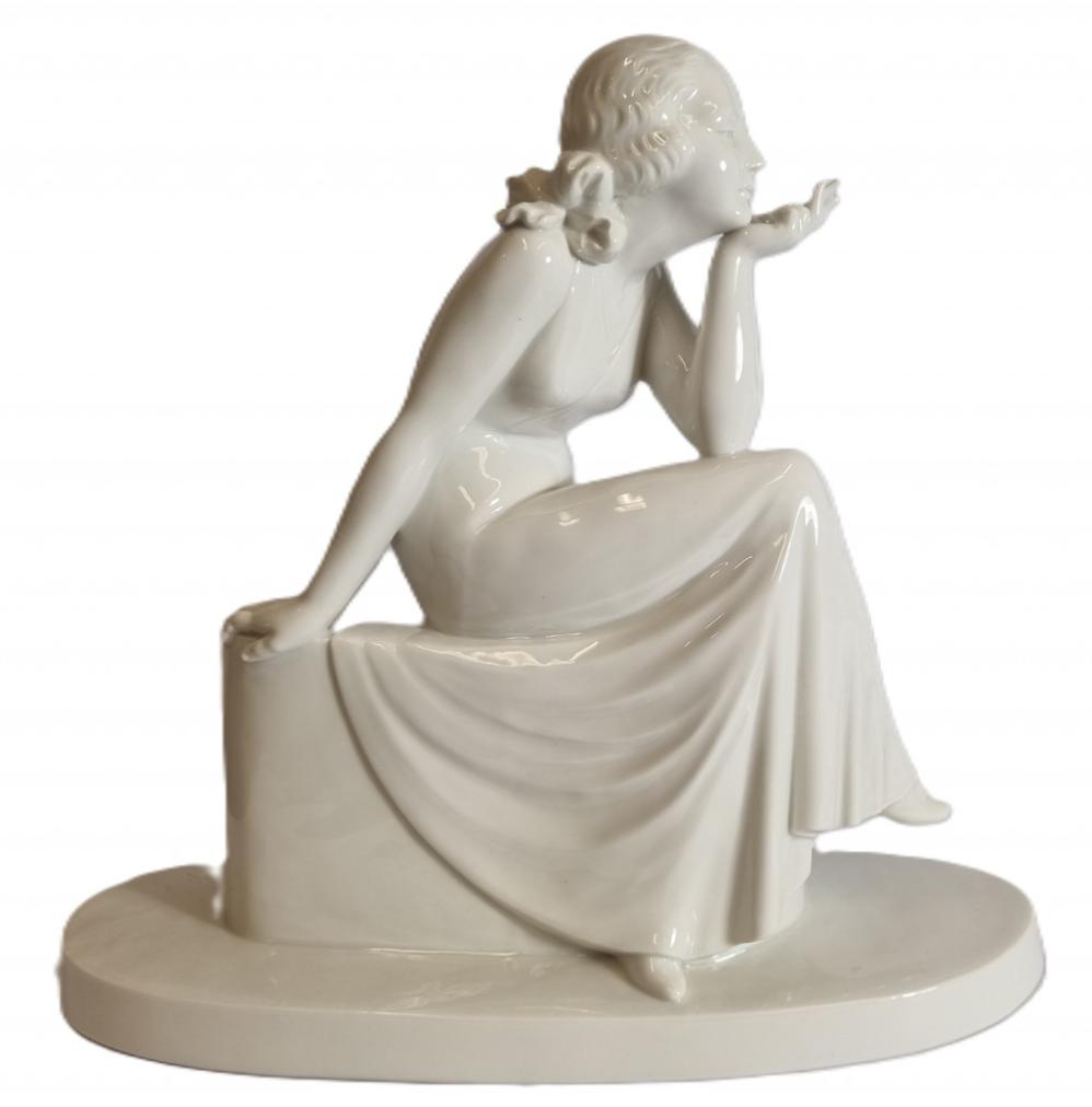 Francouzký sochař, tvořil pro porcelánku Villenauxe v první polovině 20. století. Signováno B. Rezl, období 30. léta 20. století. Perfektní stav, výška 24 cm, sokl délka 37 cm.