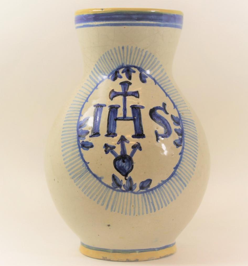 Keramický lidový džbánek z 19.stol.,motiv IHS,