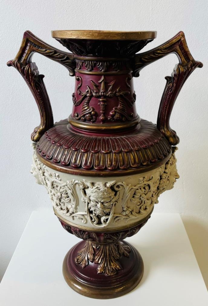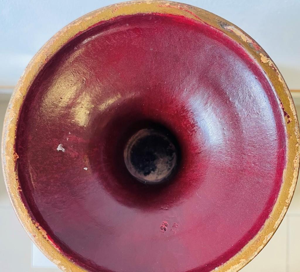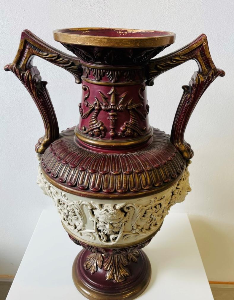 Výška 42 cm, v nejširším bodě 30 cm, průměr hrdla 16 cm, průměr dna 15 cm, na vnitřní straně hrdla nese známky opotřebení užíváním, značeno na spodní straně "23 JM". Johan Mareš