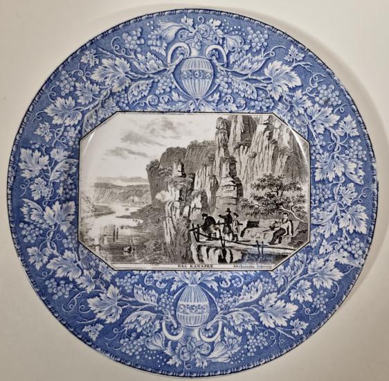 Keramický talíř s vyobrazením Saského Švýcarska, průměr talíře 20,5 cm. Značeno písmenem W.