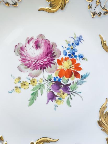 Průměr dna 13cm, průměr talíře 30 cm, výška 5 cm, značeno na spodní straně - viz. foto . Perfektní stav. Ručně malováno.