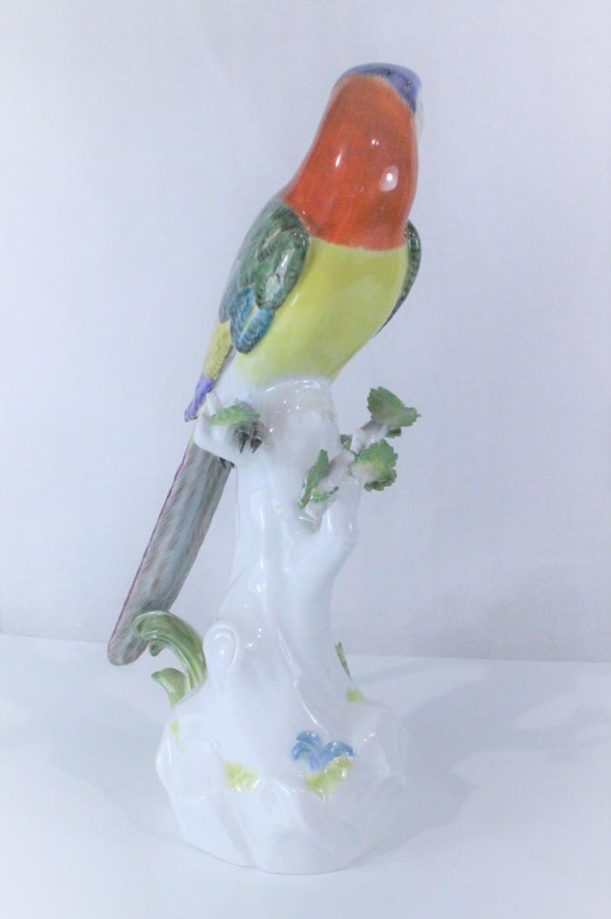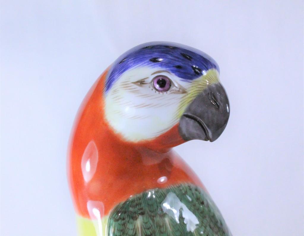Míšeňský papoušek o výšce 32 cm, je v perfektním stavu.