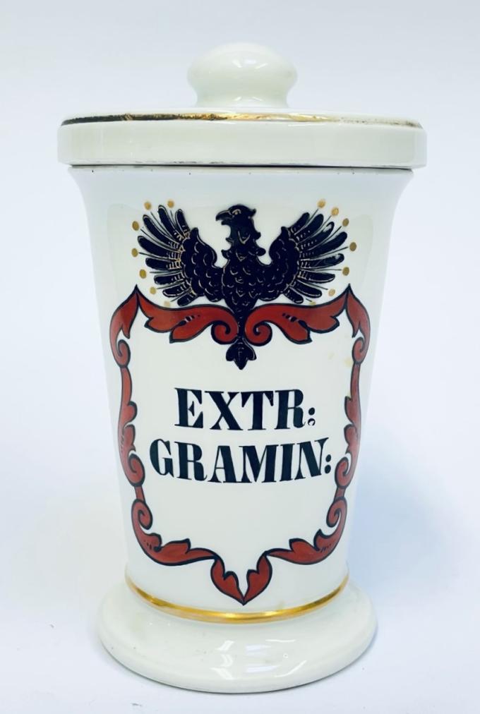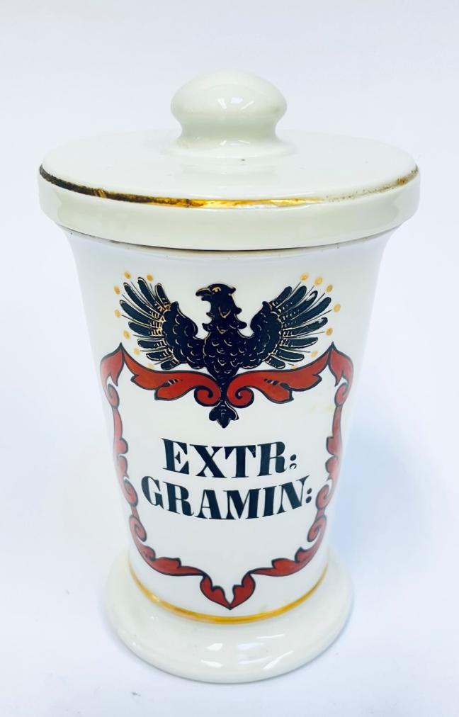 Březová (Pirkenhammer) Porcelánová lékárenská dózička, Fischer &Mieg