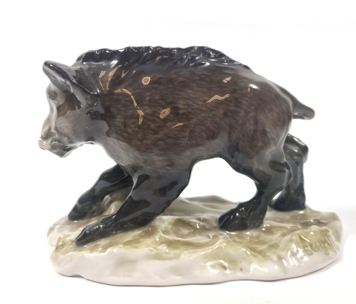 Porcelánová soška Rosenthal - divoké prase. Výška 9 cm, délka podstavce 14 cm. Stav výborný.