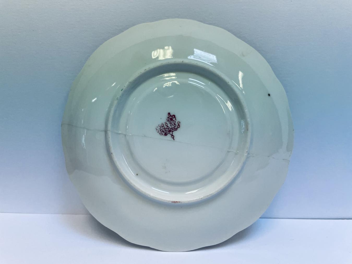 Průměr podšálku 14 cm, průměr hrníčku 9 cm, signováno na spodní straně - viz. foto, podšálek má prasklinu přes celou svou délku - viz. foto .