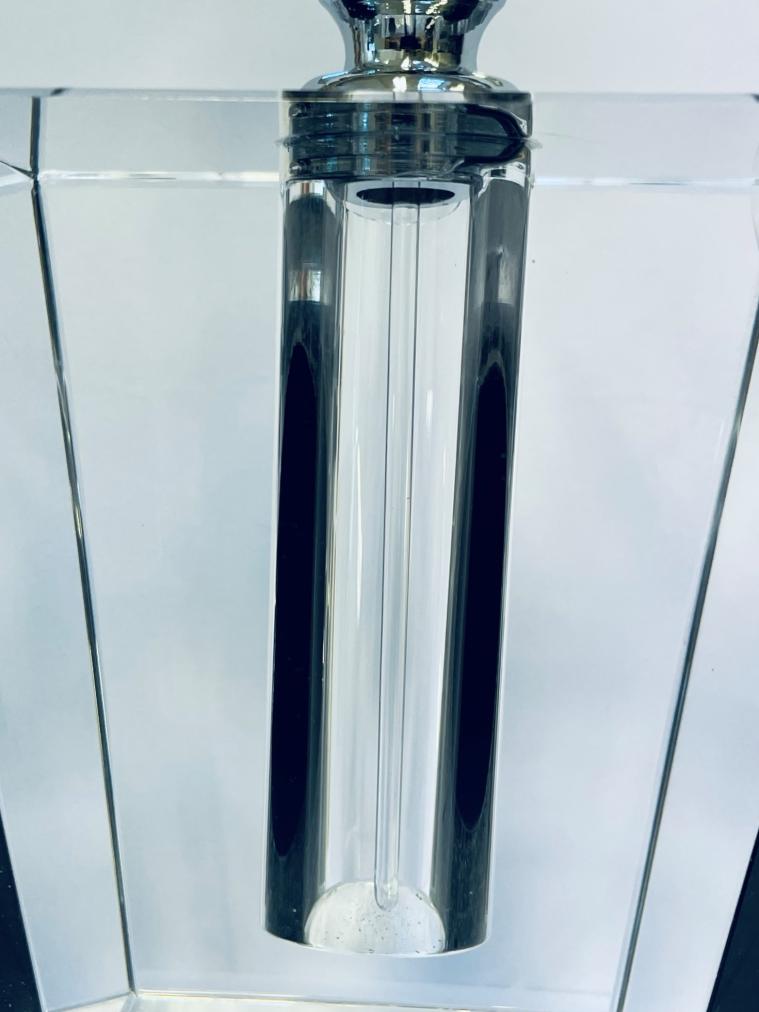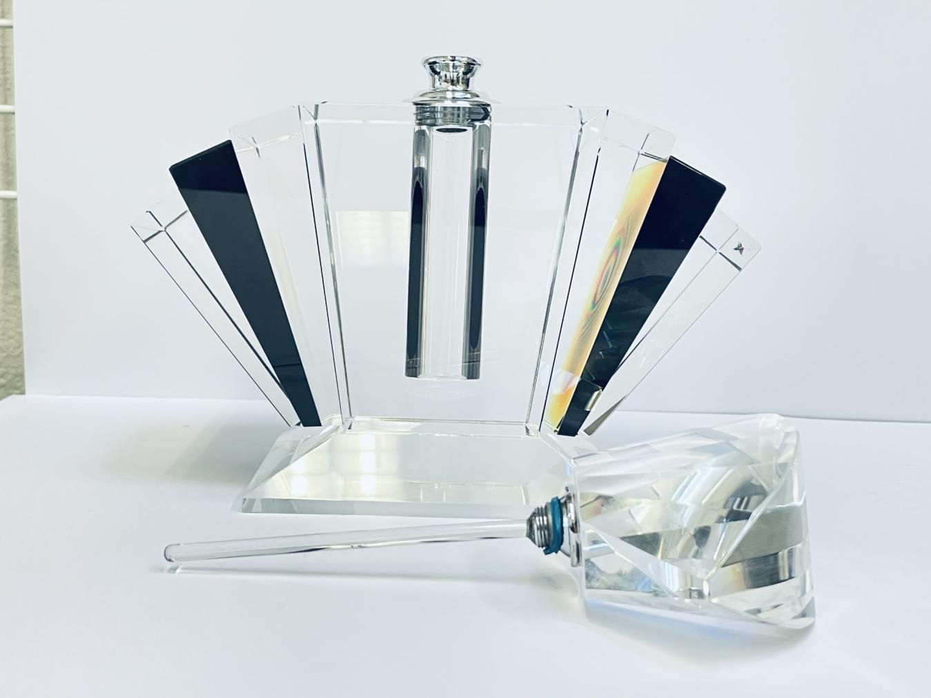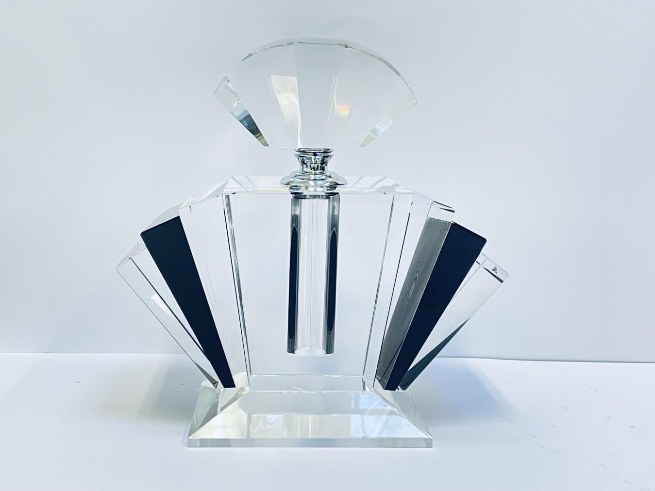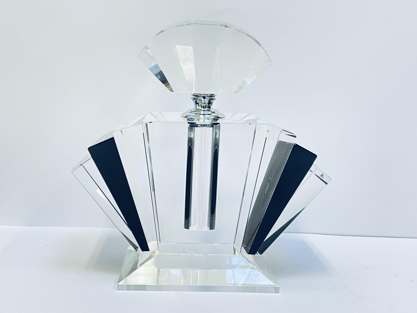 Obrovský parfum flakon, ve stylu art-deco, čiré a hyalitové broušené sklo,