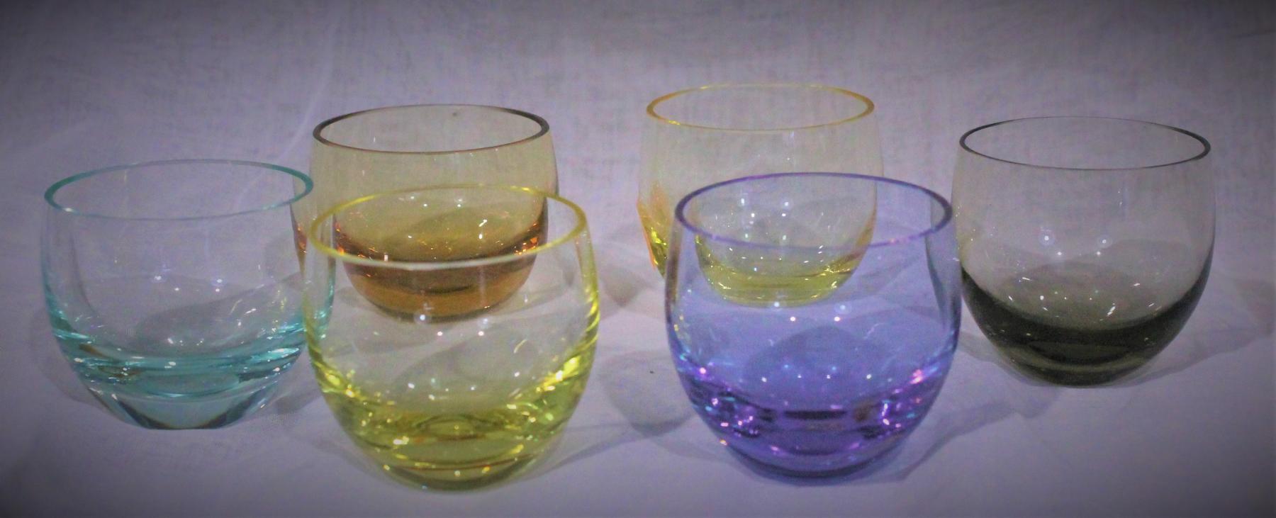Sada šesti sklenic Moser, nejmenší varianta, výška sklenice 4,5 cm. Perfektní stav. Zabroušený spodek.