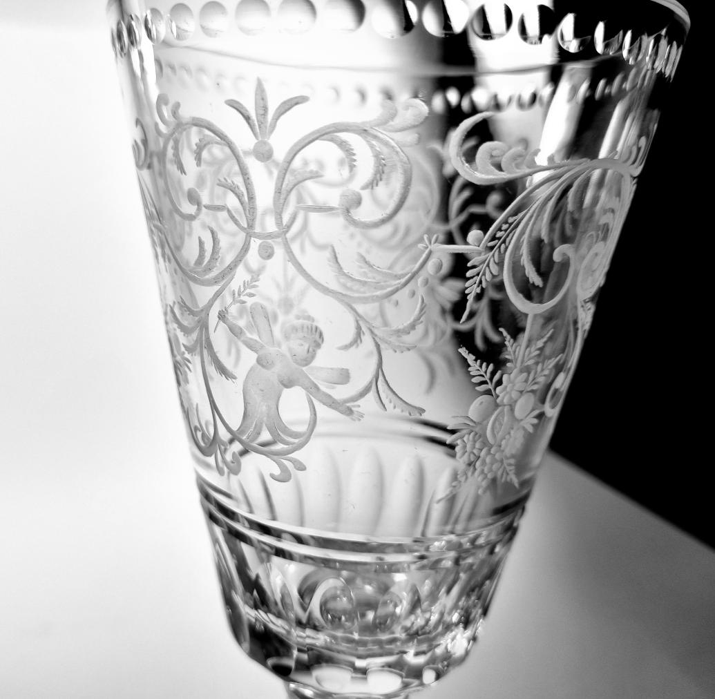 Číše o rozměrech: výška 22 cm, průměr dolní části 9 cm, průměr horní části 9 cm.