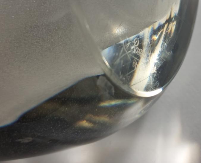 Skleněná váza o rozměrech - výška 16 cm, průměr 10 cm. Značeno na spodní straně Rosenthal.