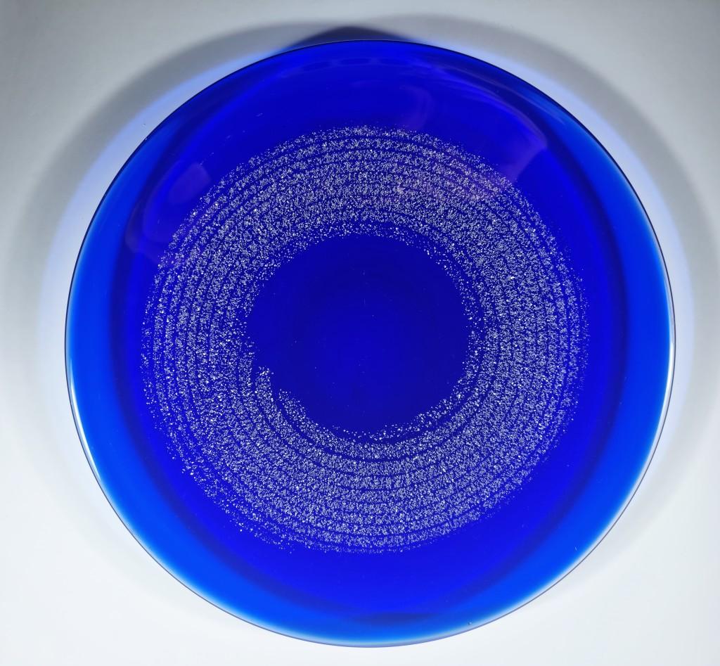 Skleněná dekorace o rozměrech - průměr 36 cm, výška 4 cm.