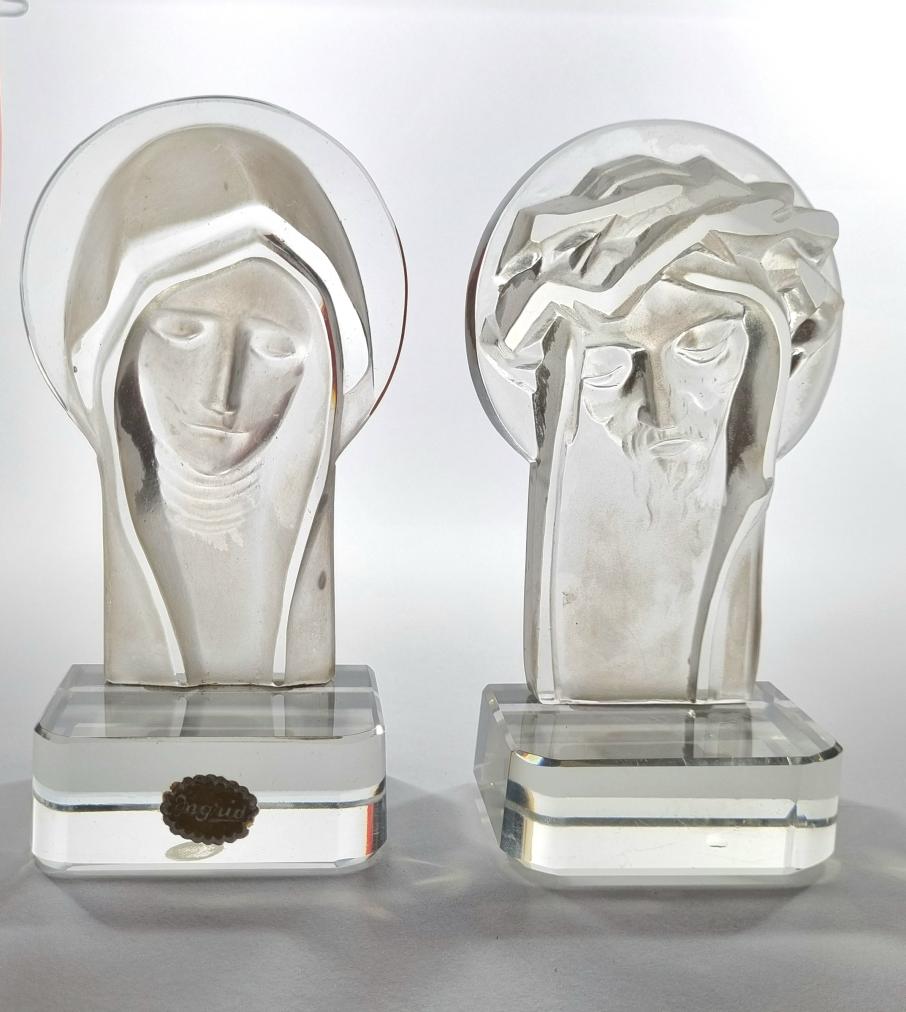 Sklo Ingrid Schlevogt o rozměrech: výška 18 cm, šířka podstavce 8 cm, průměr svatozáře 11 cm. Stav viz foto.