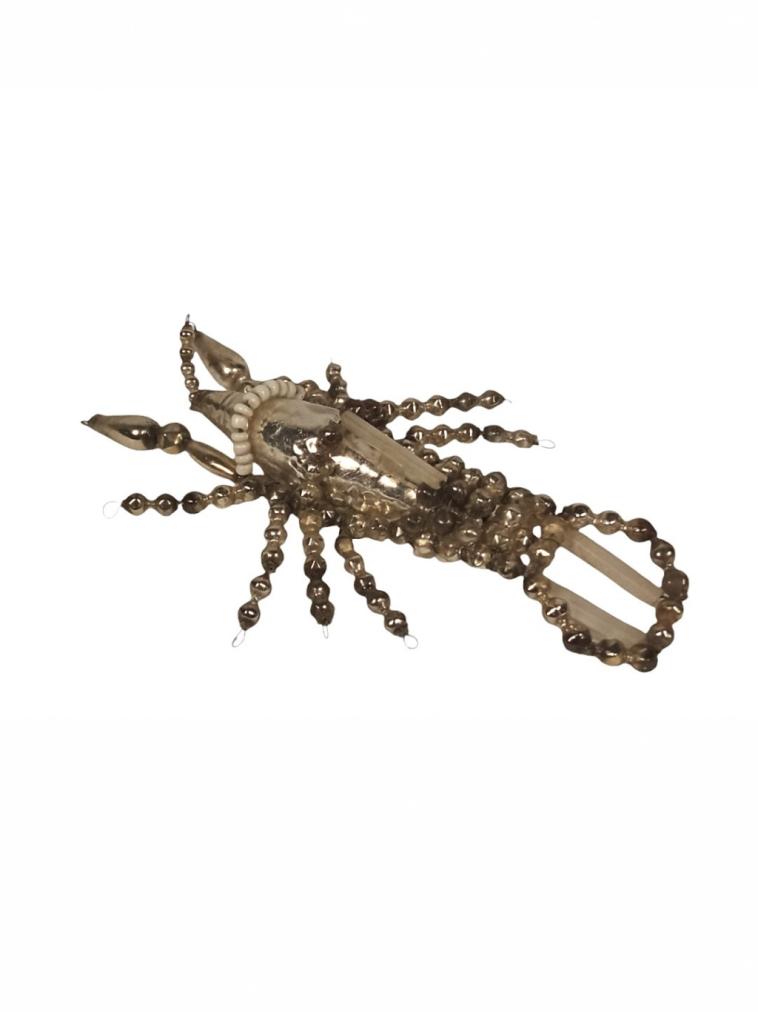 Krásná vánoční ozdoba v podobě raka, vytvořena ze skleněných korálků navlékaných na tenkých drátcích. Na délku měří 10 cm, na šířku měří 7 cm.